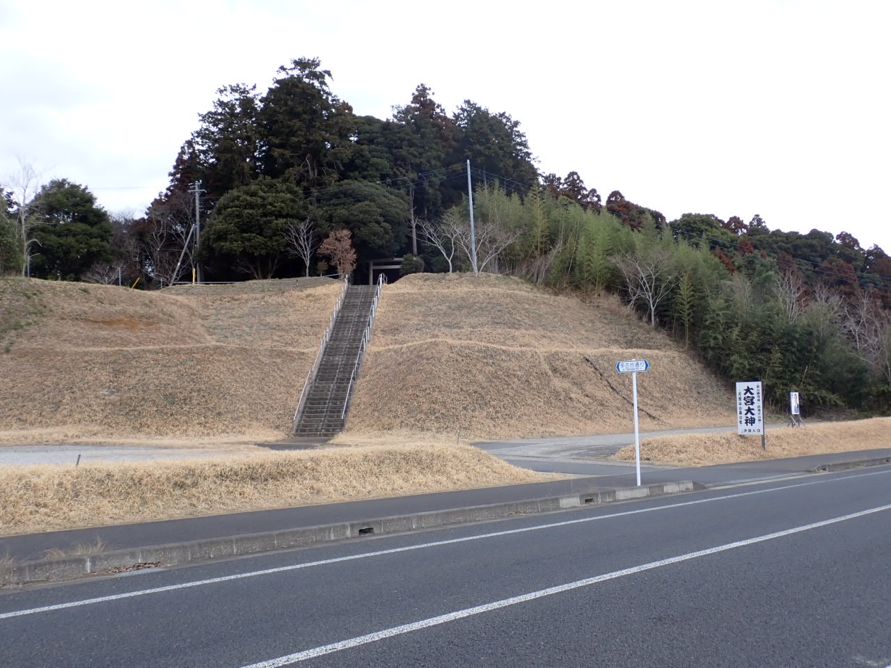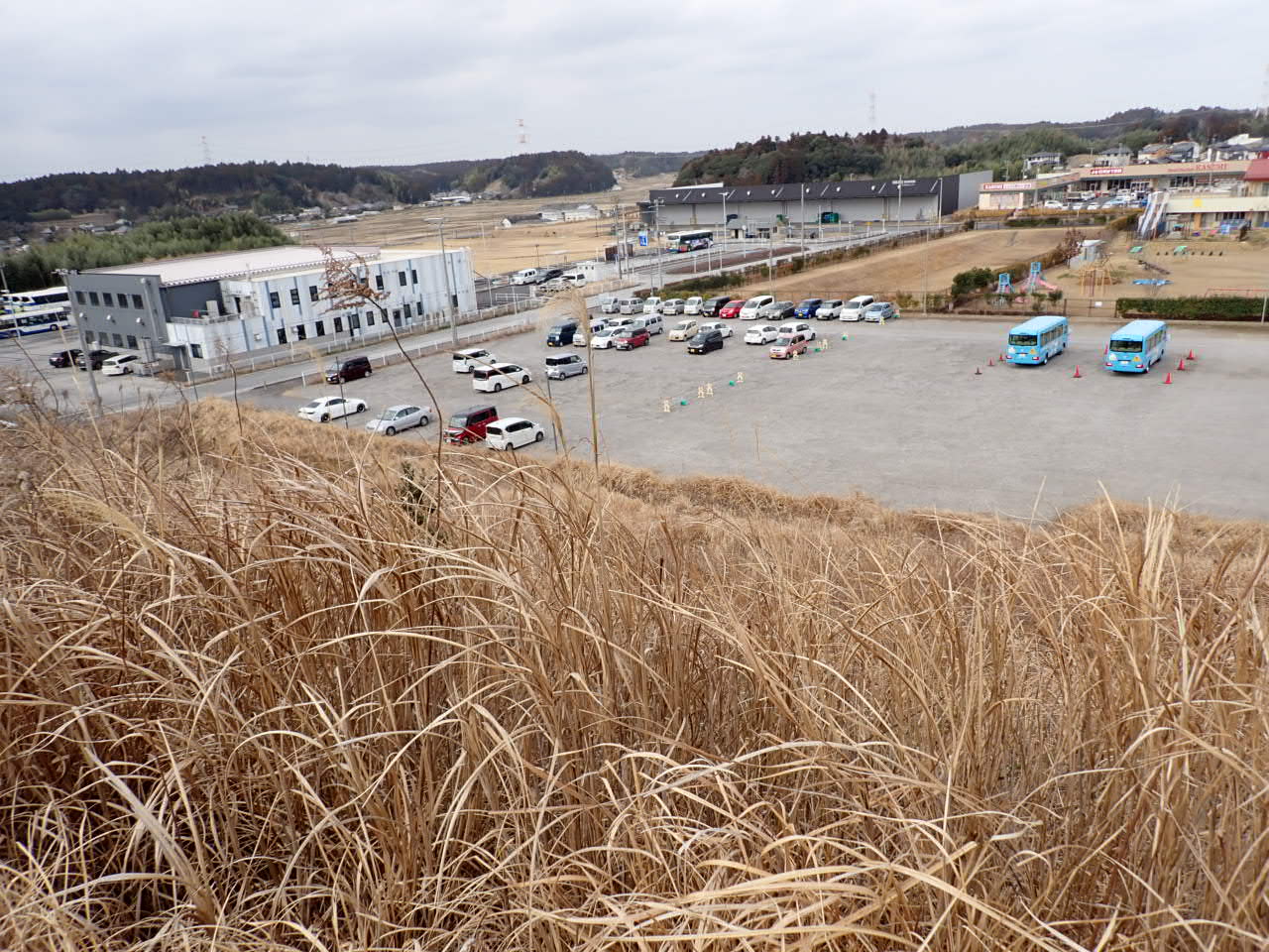 ④多古城の北半分は開発され、バスターミナルや住宅地になっています。開発前は下の地面はこの撮影したところと同じ高さの台地でした。さらに、削ったところは弥生時代の住居あったようで、この多古町に佐賀県の吉野ケ里遺跡規模の集落があったとのことでした。