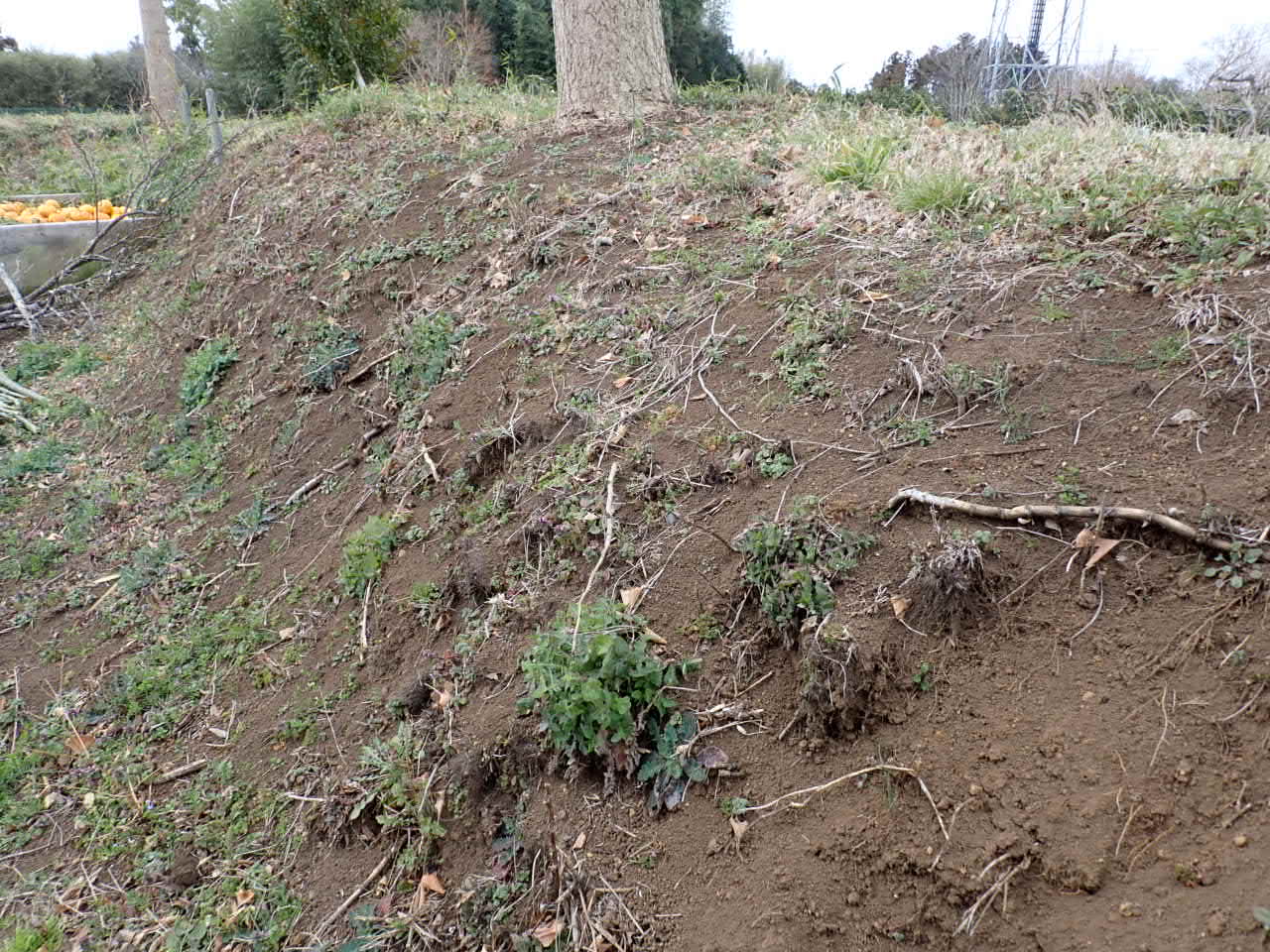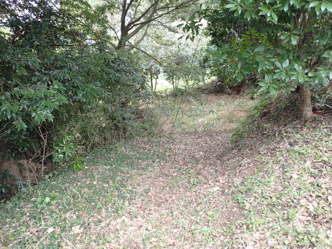 ⑧帯曲輪から西側⑨のです。ここは自然の崩れのようで、昔の遺構が残っています。