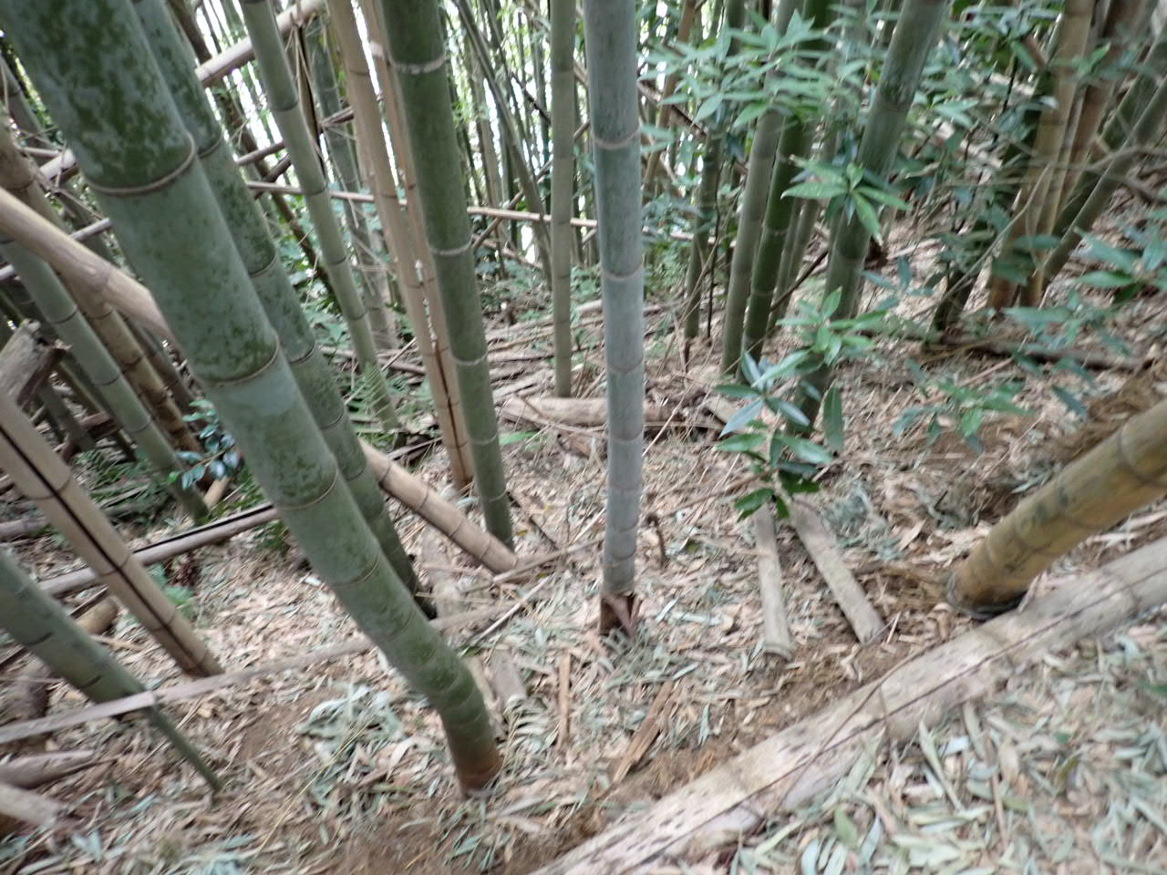 ⑬ここは竹だらけで降りられません。とってもかなり急でした。