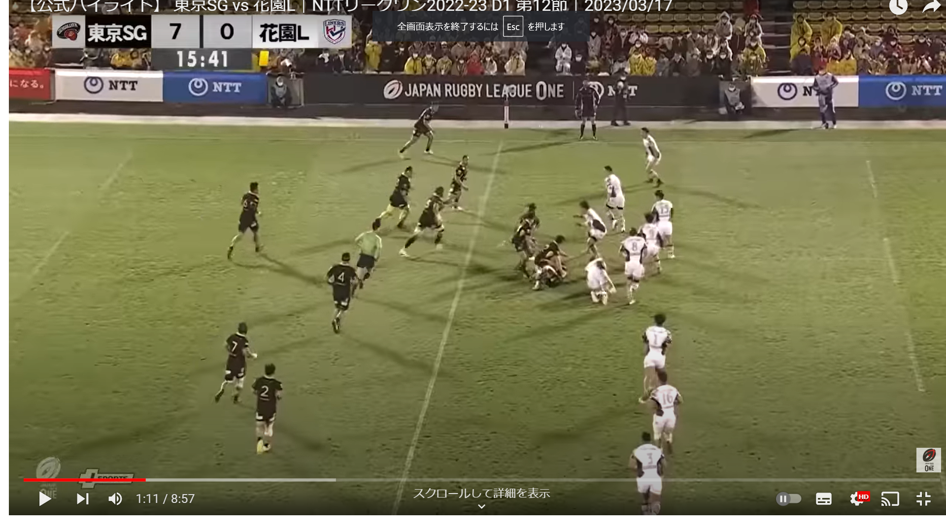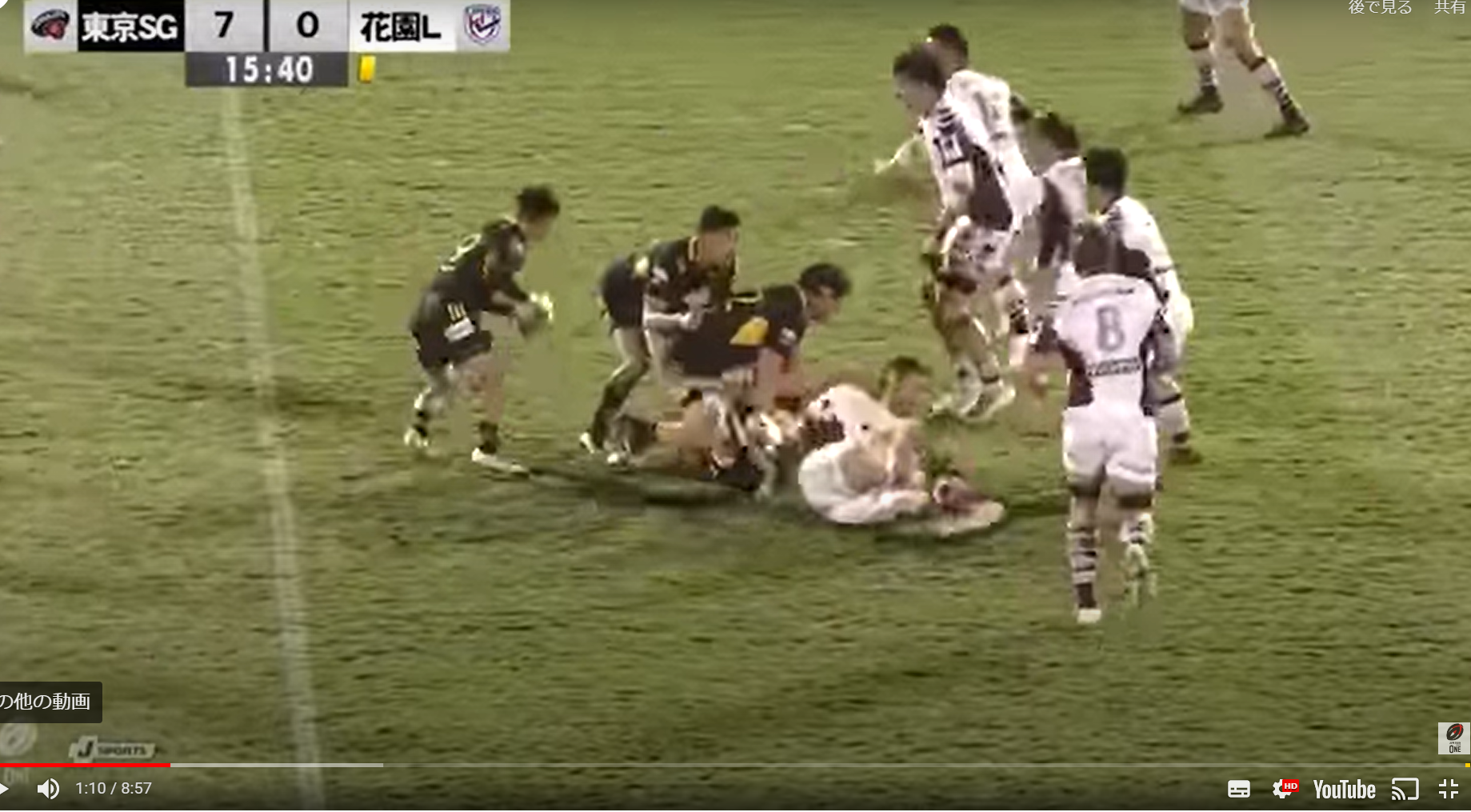 ここでナイスファイトを見つけました。1:13~黒がトライするまで白15番竹田 祐将に注目してください。