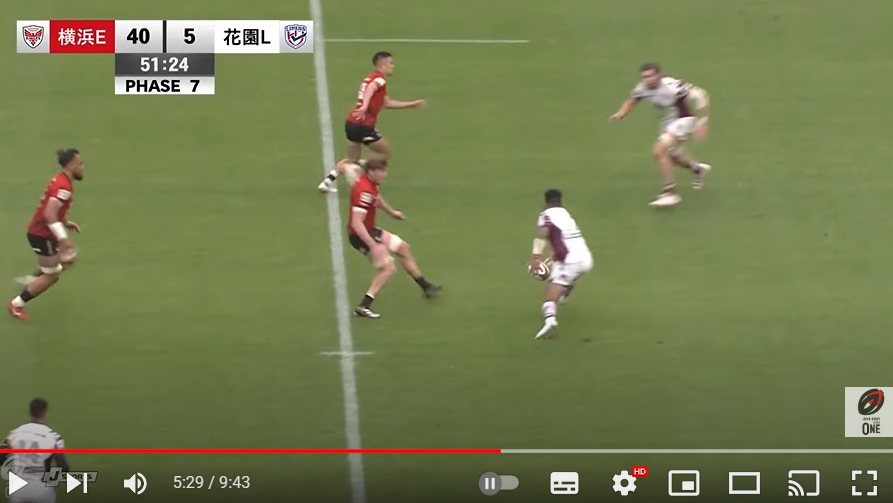 これは3人のディフェンスを翻弄させた10番でトライがほぼ確定したようなシーンでした。