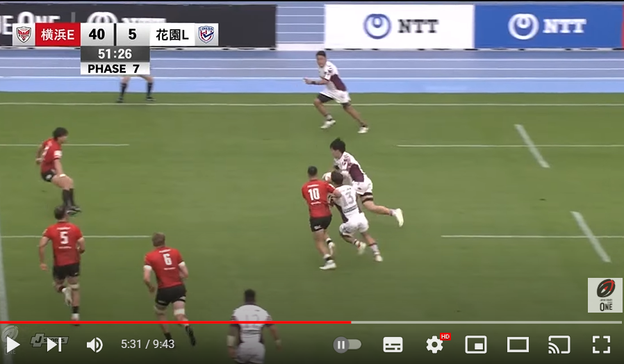 今回のトライは田村選手の3人のディフェンス翻弄で決まったように思い、トライには立役者ですね。