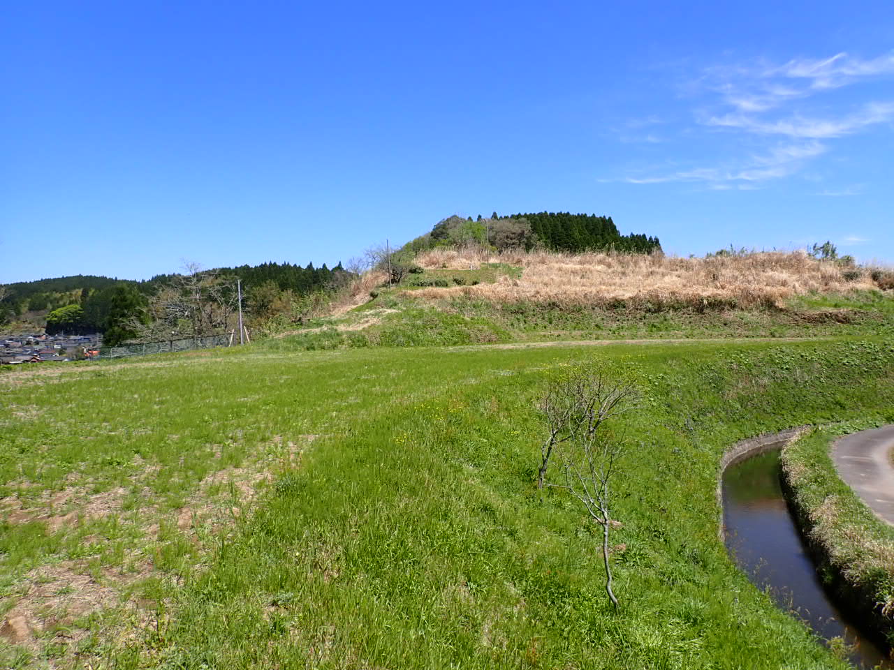 その南側にある長円状の平坦地が②二の丸、北東の尾根を削平した面が③三の丸です。