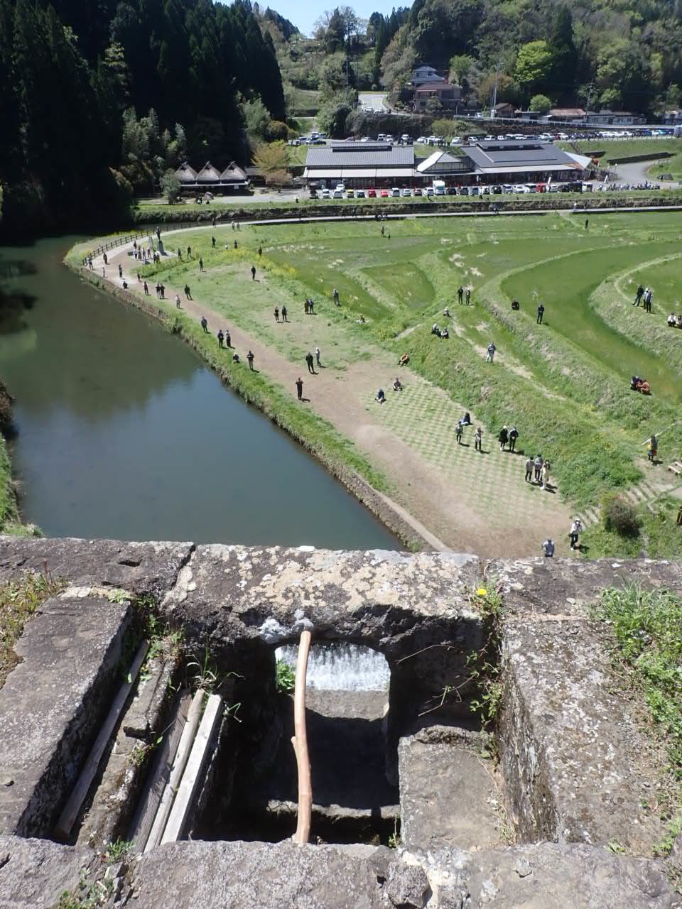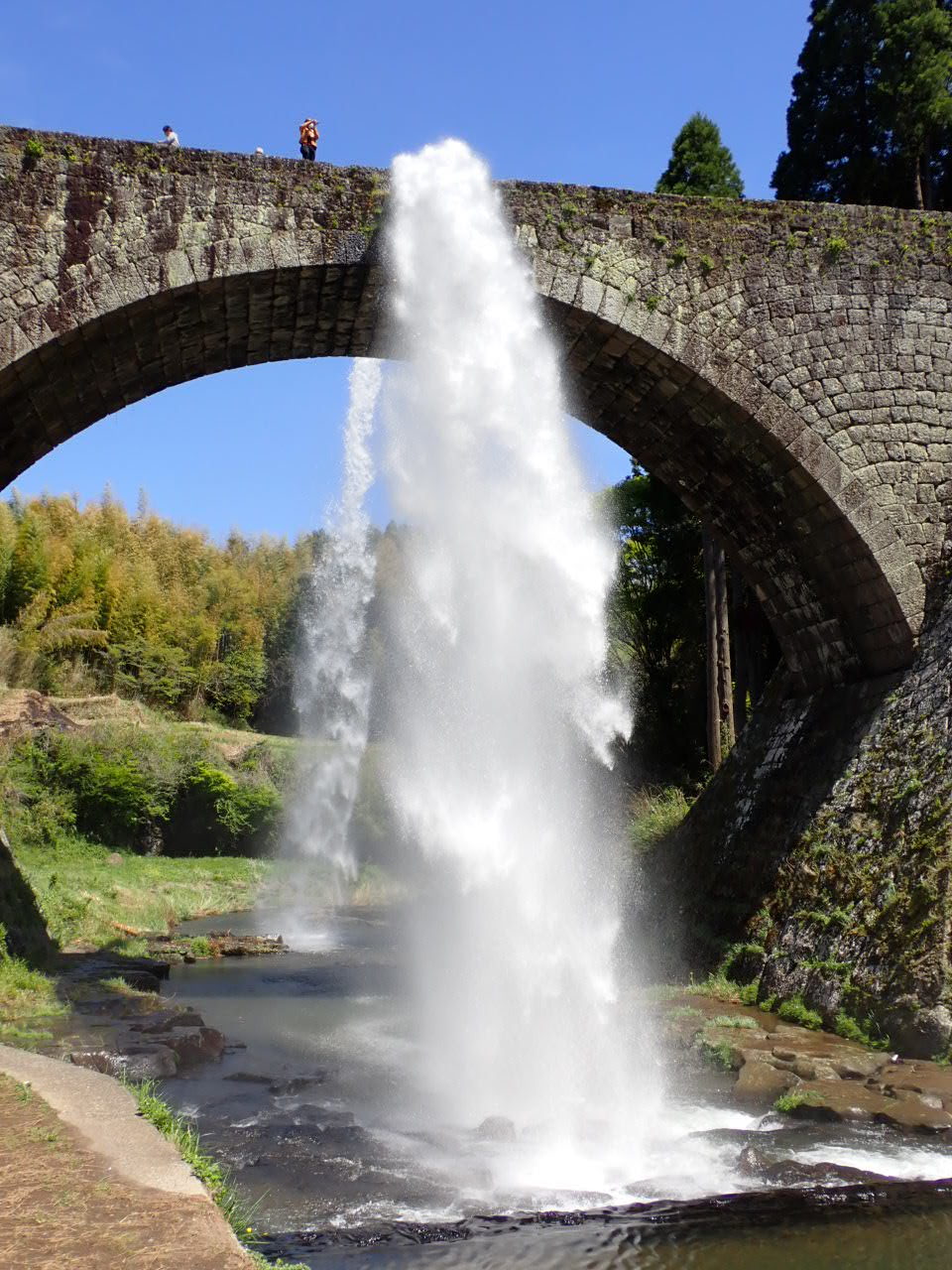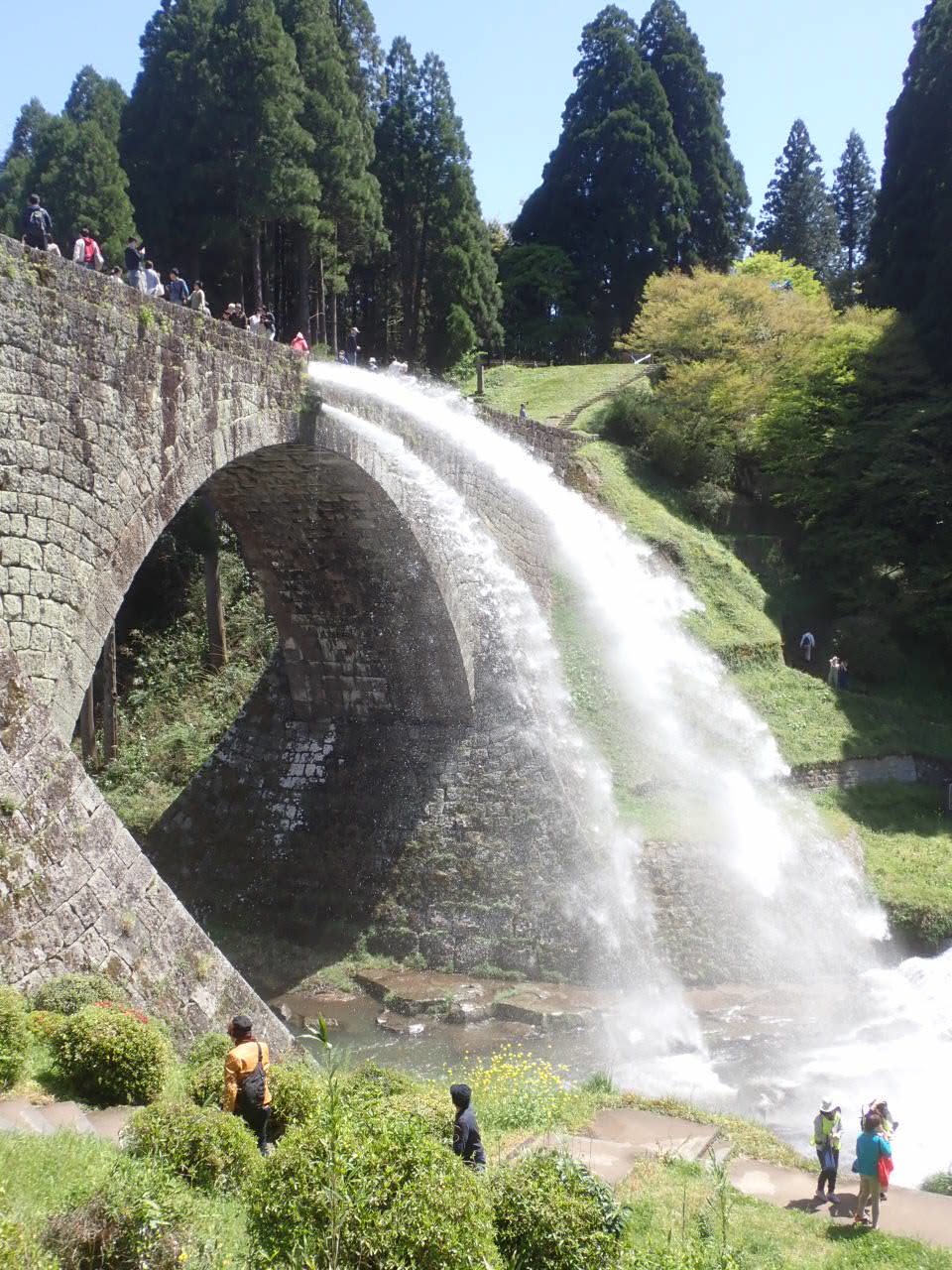 奥に見える橋が”通潤橋”で江戸時代に農業のために造られた水道橋です。(詳細は最後に説明しています)