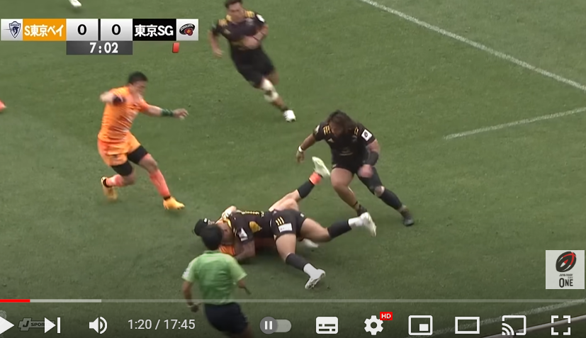 前回の福井選手と同じプレー(⇒【真のPOMは誰だ?!】ワイルドナイツvsイーグルス戦)で、テビタ・リー選手もタックル後、ボールを取りに行かず、陣取りをしています。