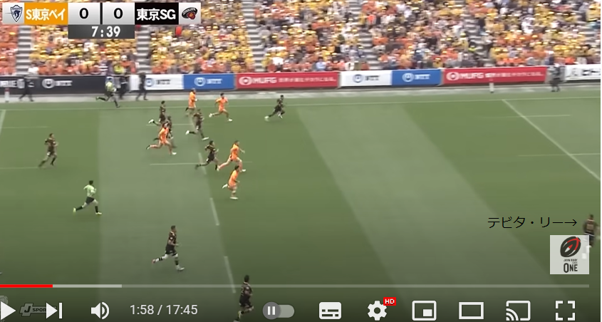 テビタ・リー選手はスピアーズの同じウィングで、トライゲッターでも木田選手と根塚選手に勝ったシーンでした。