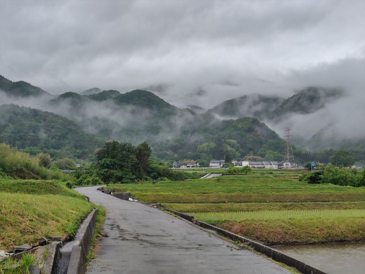 願成寺を過ぎると「わに塚の棚田」が見えます。この奥の山に白山城があります。