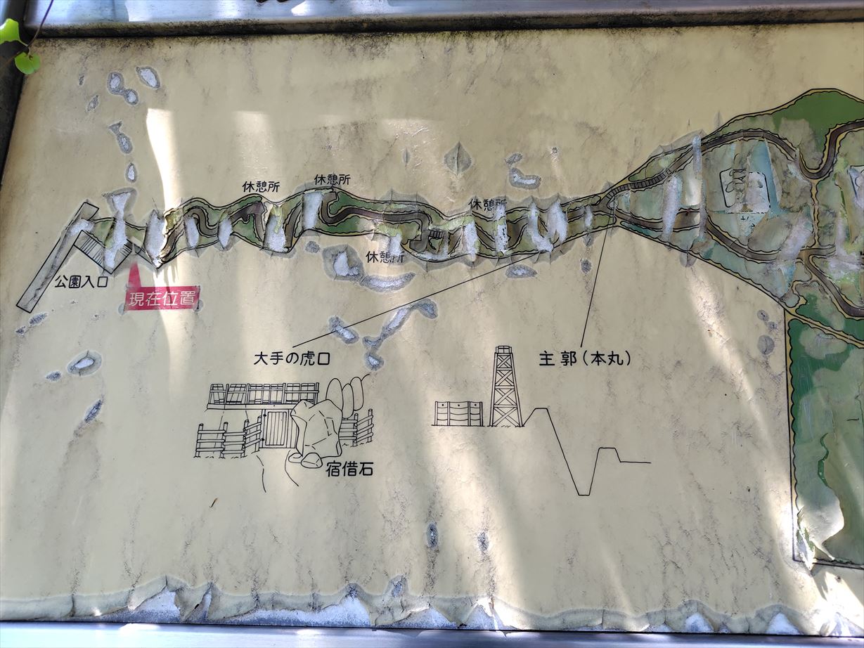 ※道路でいきなり本丸に行くことなり、遺構は全くみれませんので、上のルートでの攻城をおすすめします。