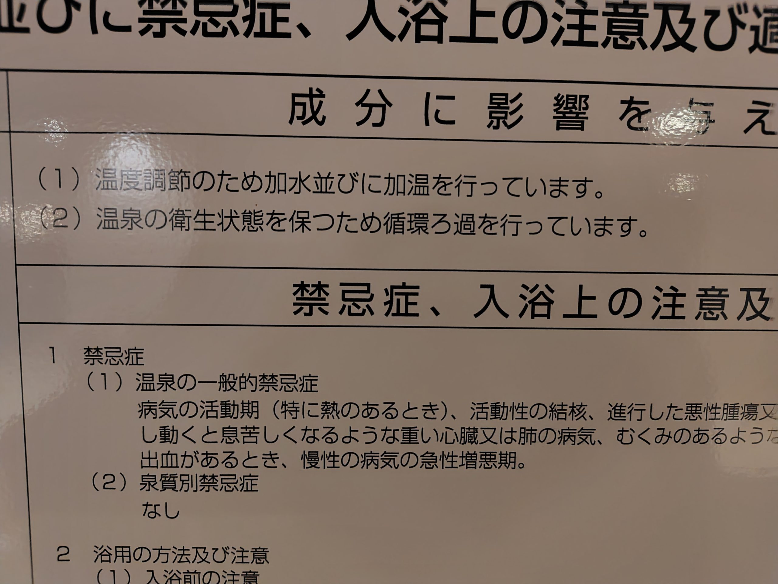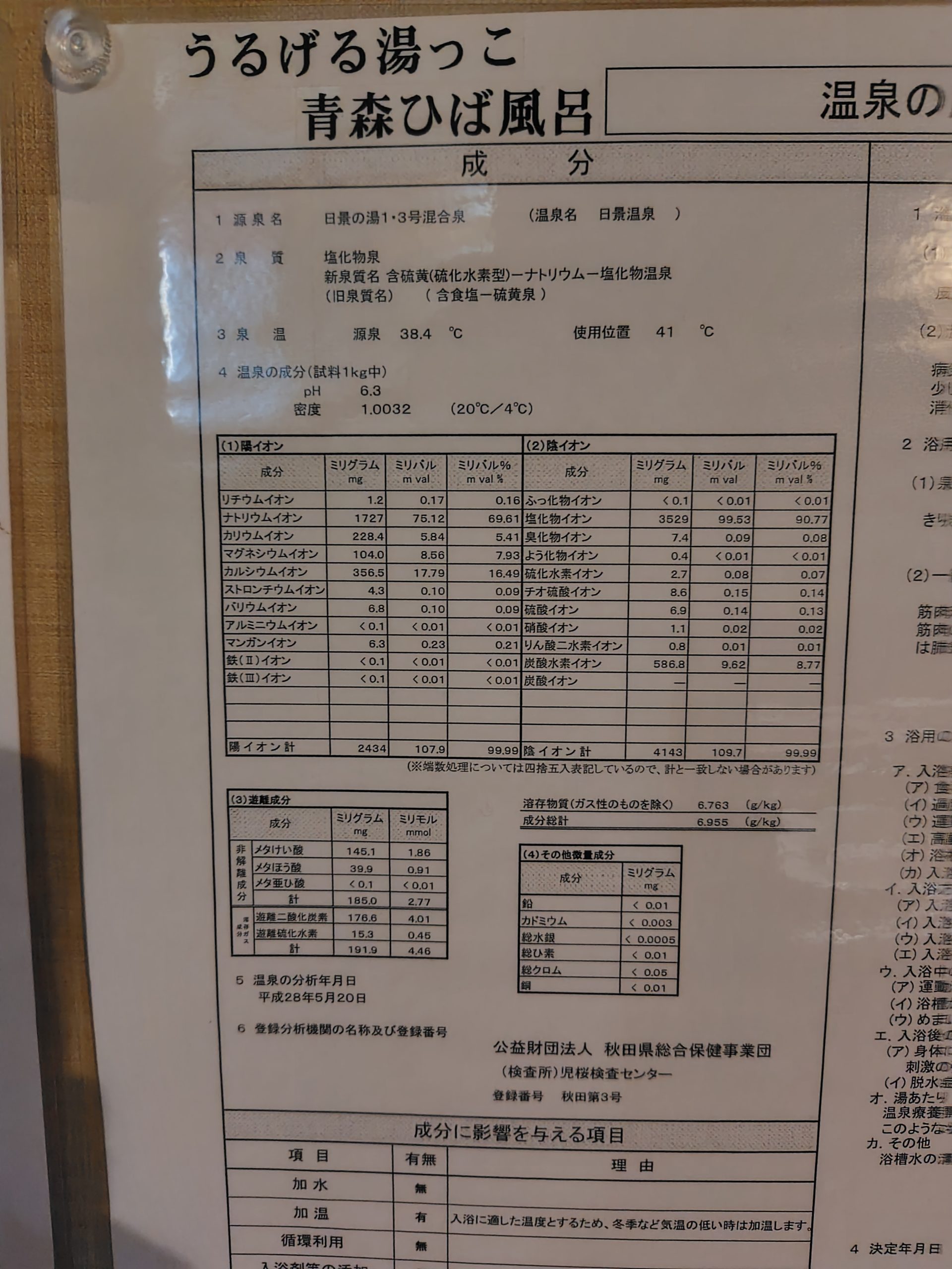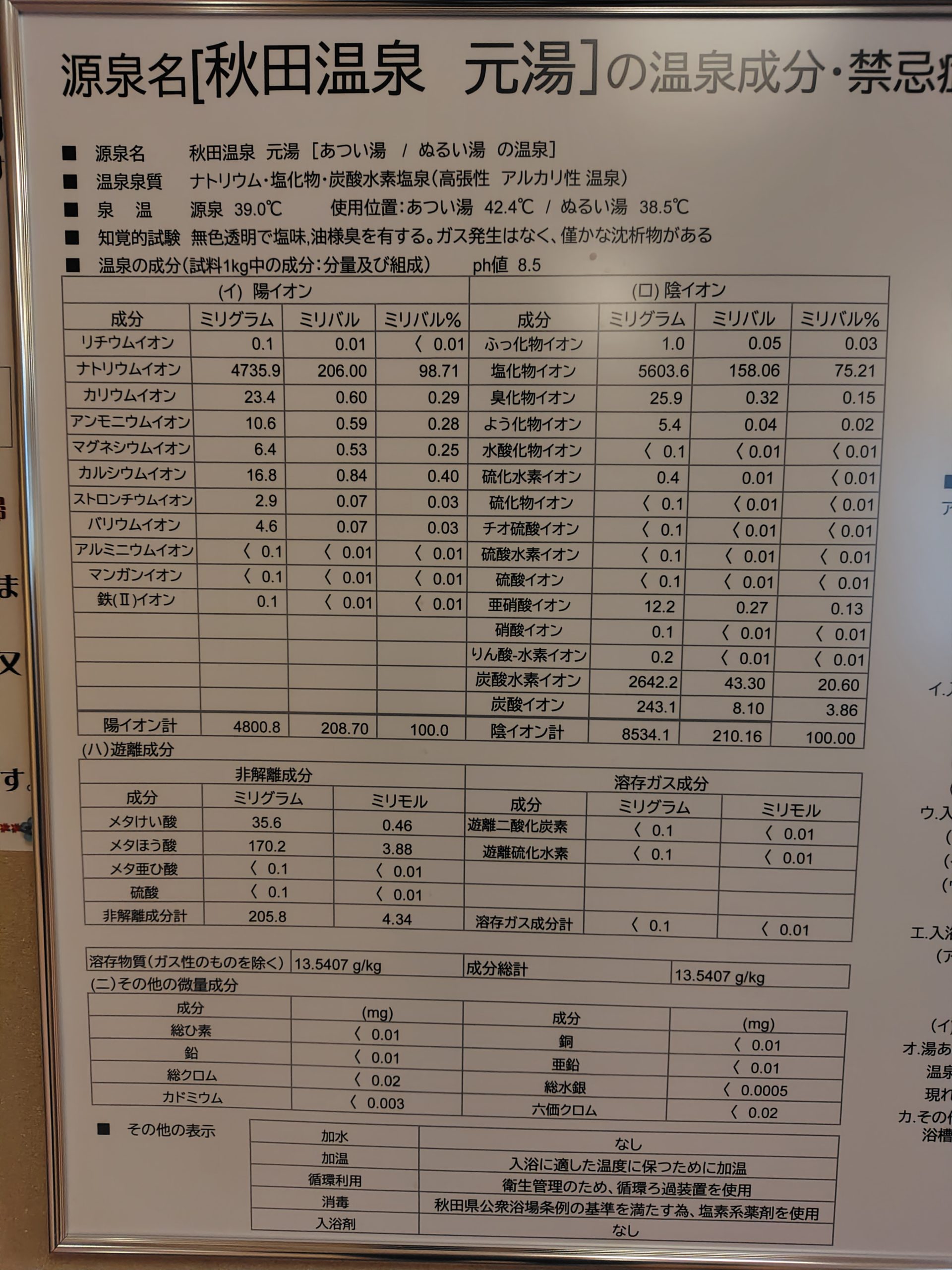 内風呂の源泉分析書