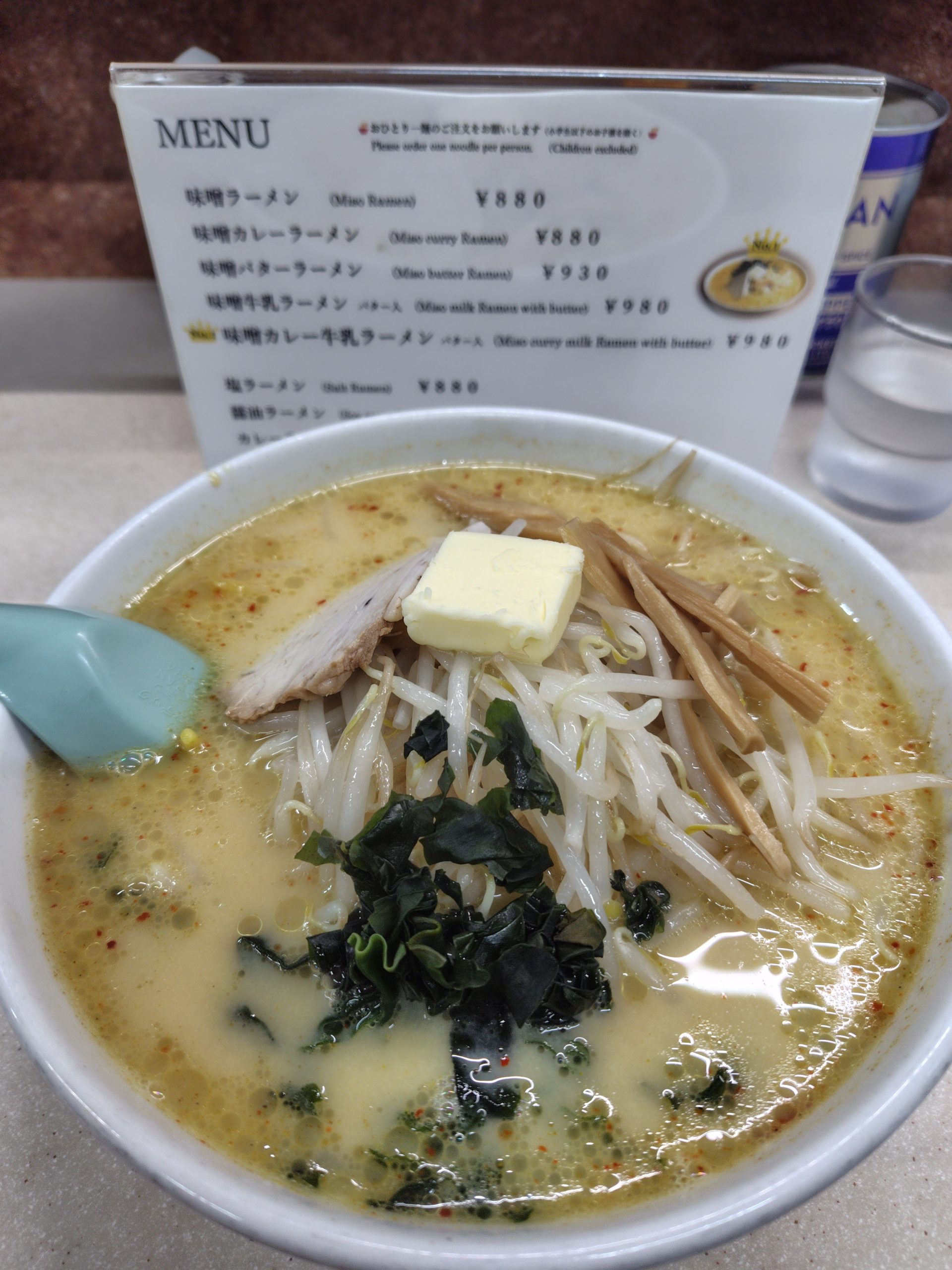 ここでは味噌カレー牛乳ラーメンバター入り980円を食べました。