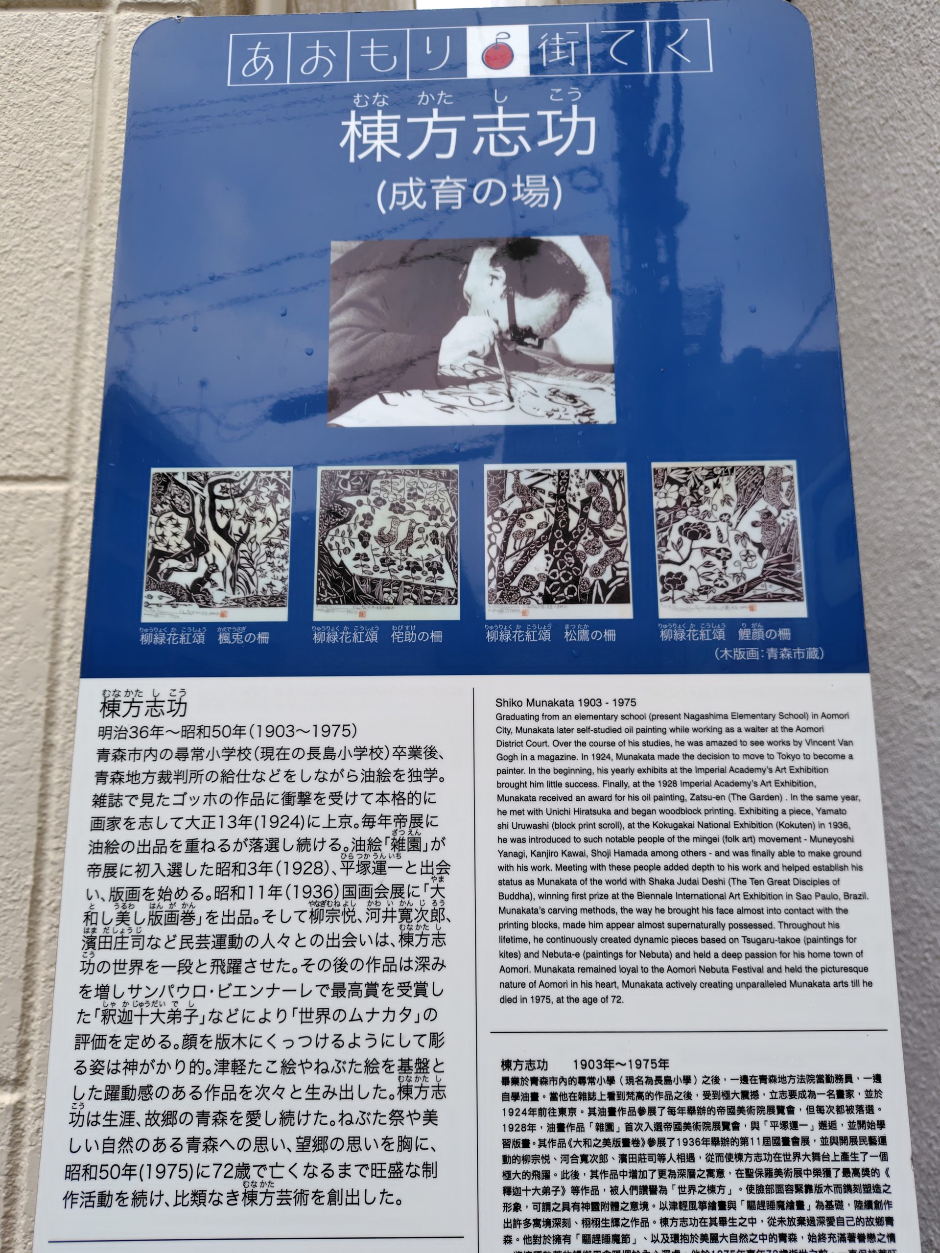 棟方志功の出生の地の近くに生育の場もあります。