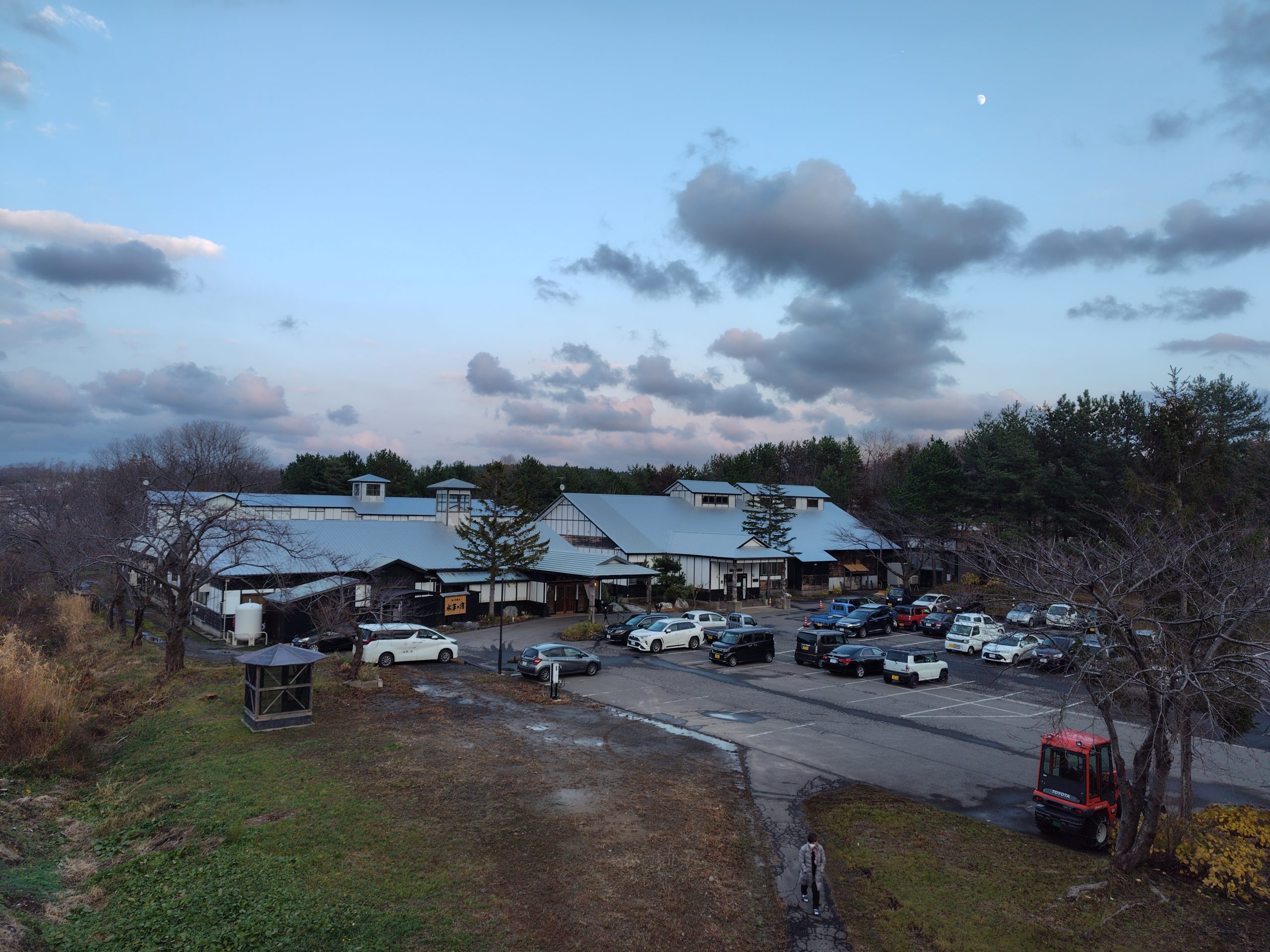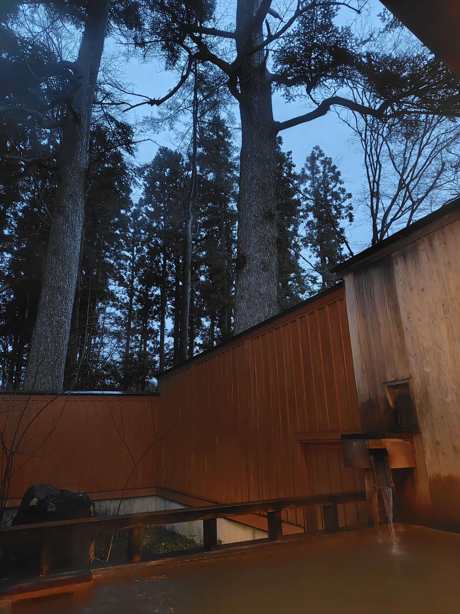 露天風呂は一度外にでる必要があります。露天風呂をでたら、かなり暗くなってました。