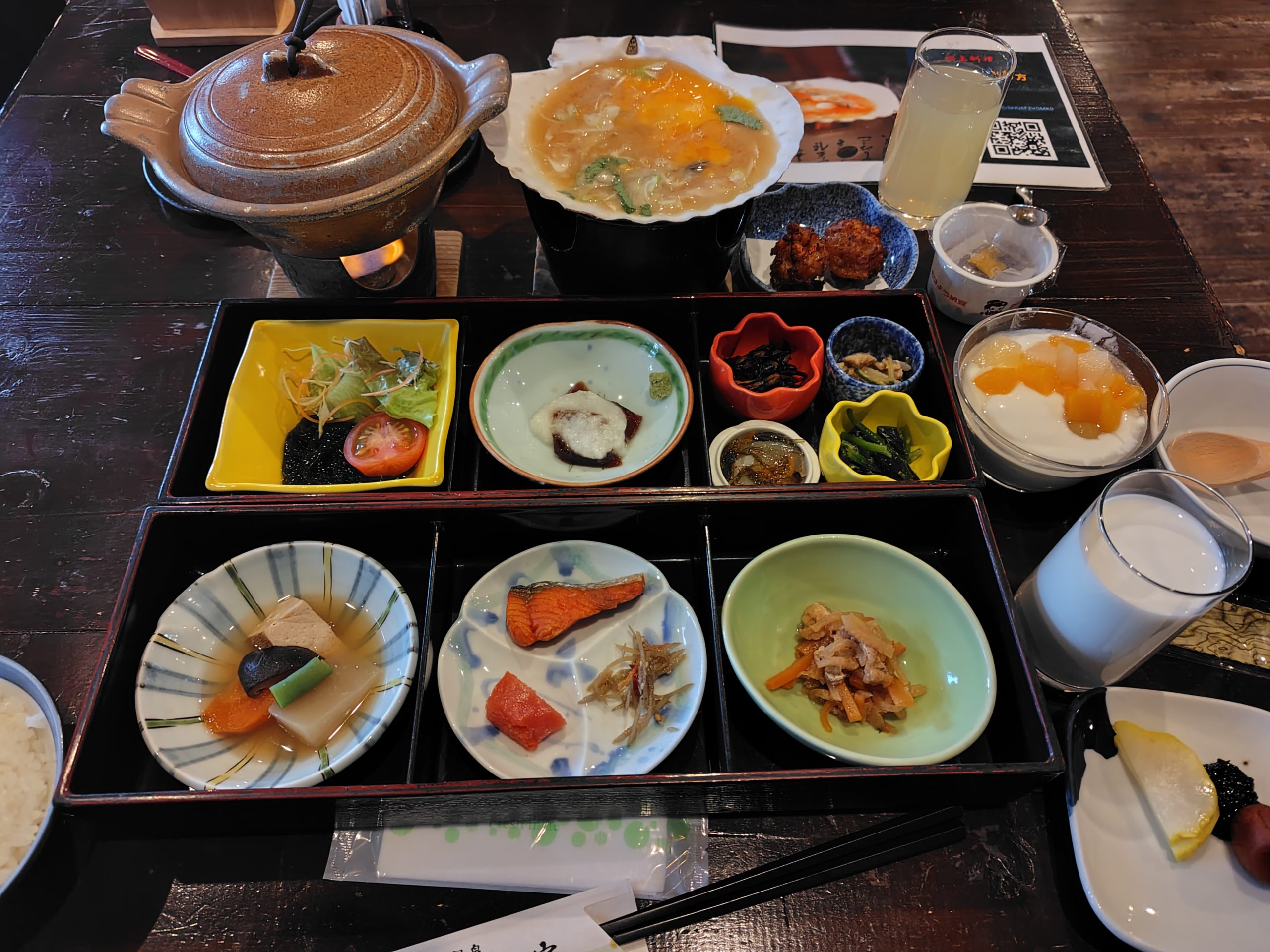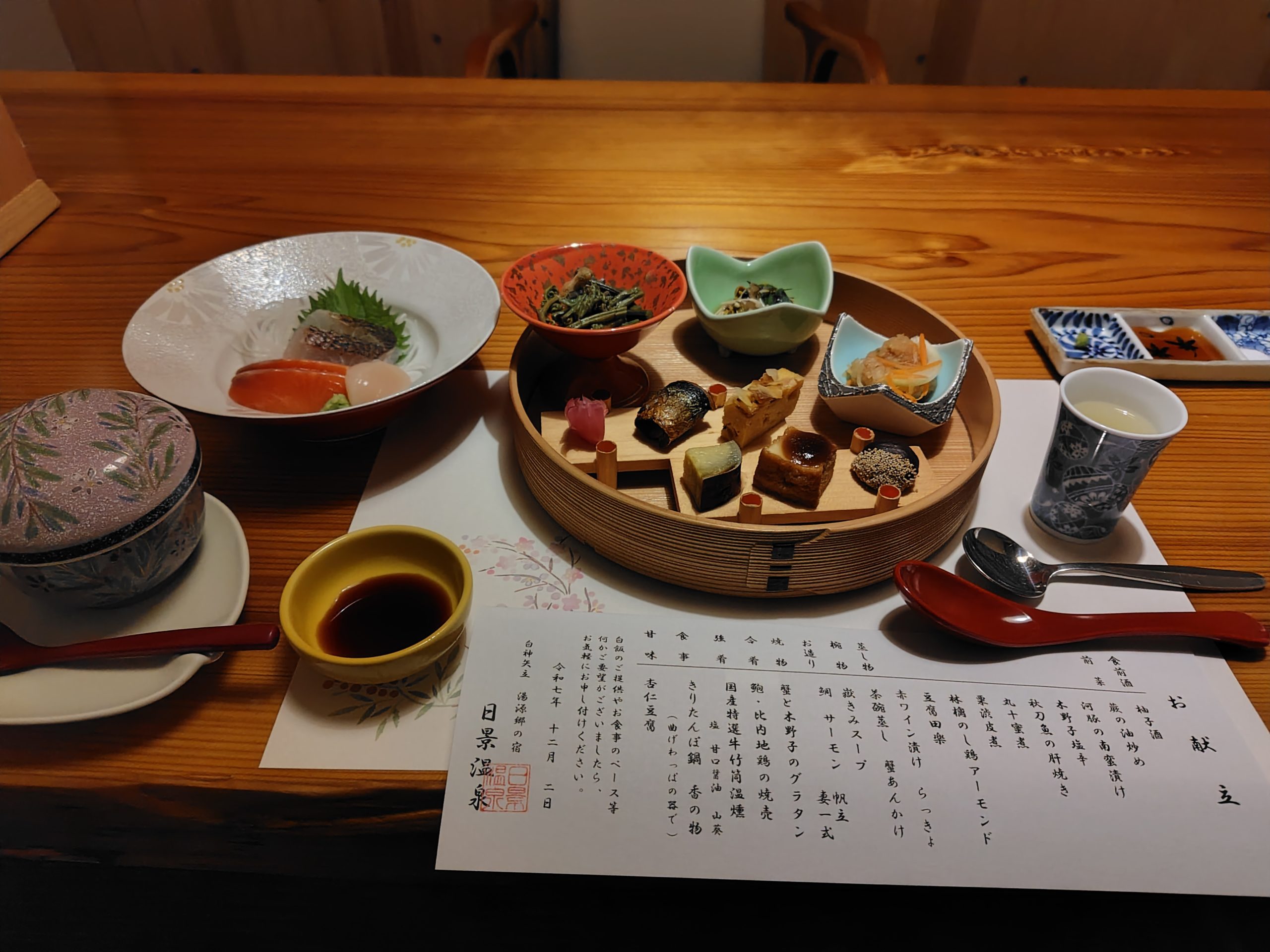 12/2 宿8:30→徒歩24分→8:54山海荘(受付は9時まで)10:00→10:22鰺ケ沢駅11:44リゾートしらかみ1号→12:48弘前駅・ランチ13:27→13:59陣馬駅・宿送迎→14:10♨大館矢立ハイツ(矢立峠温泉)15:00→徒歩33分→15:33♨日景温泉