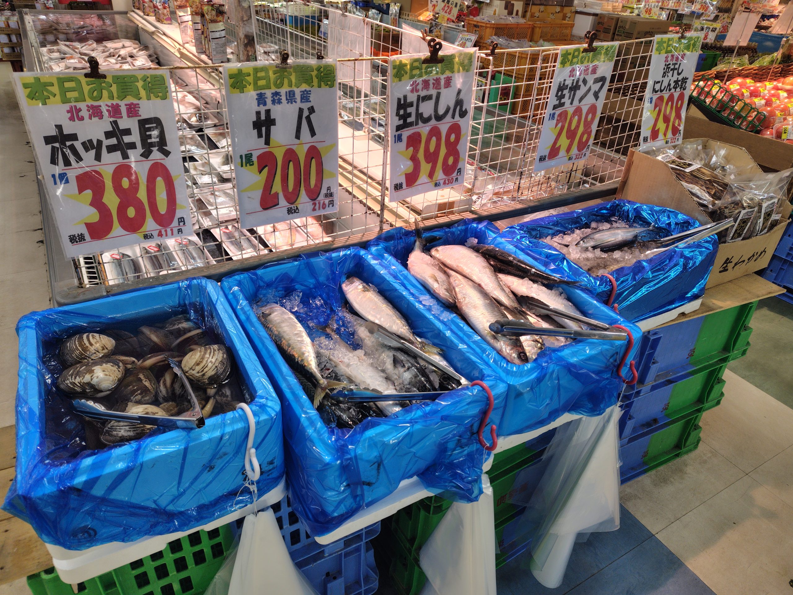 鰺ケ沢駅前のスーパー。海に近いスーパーらしい!