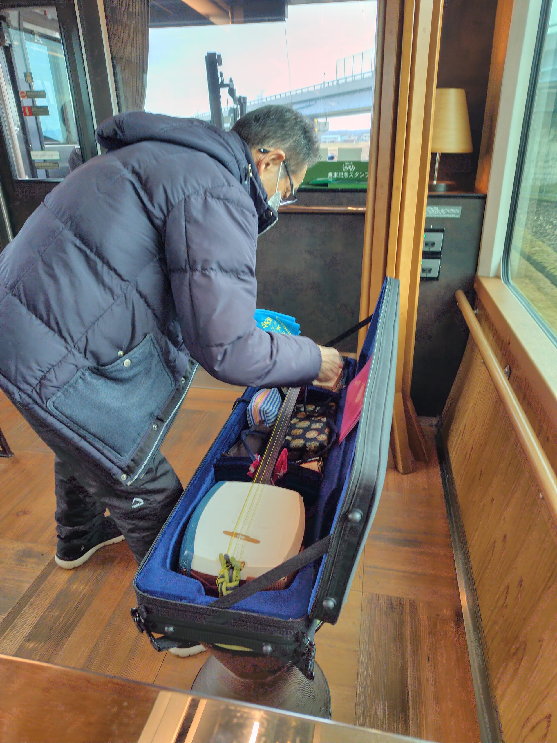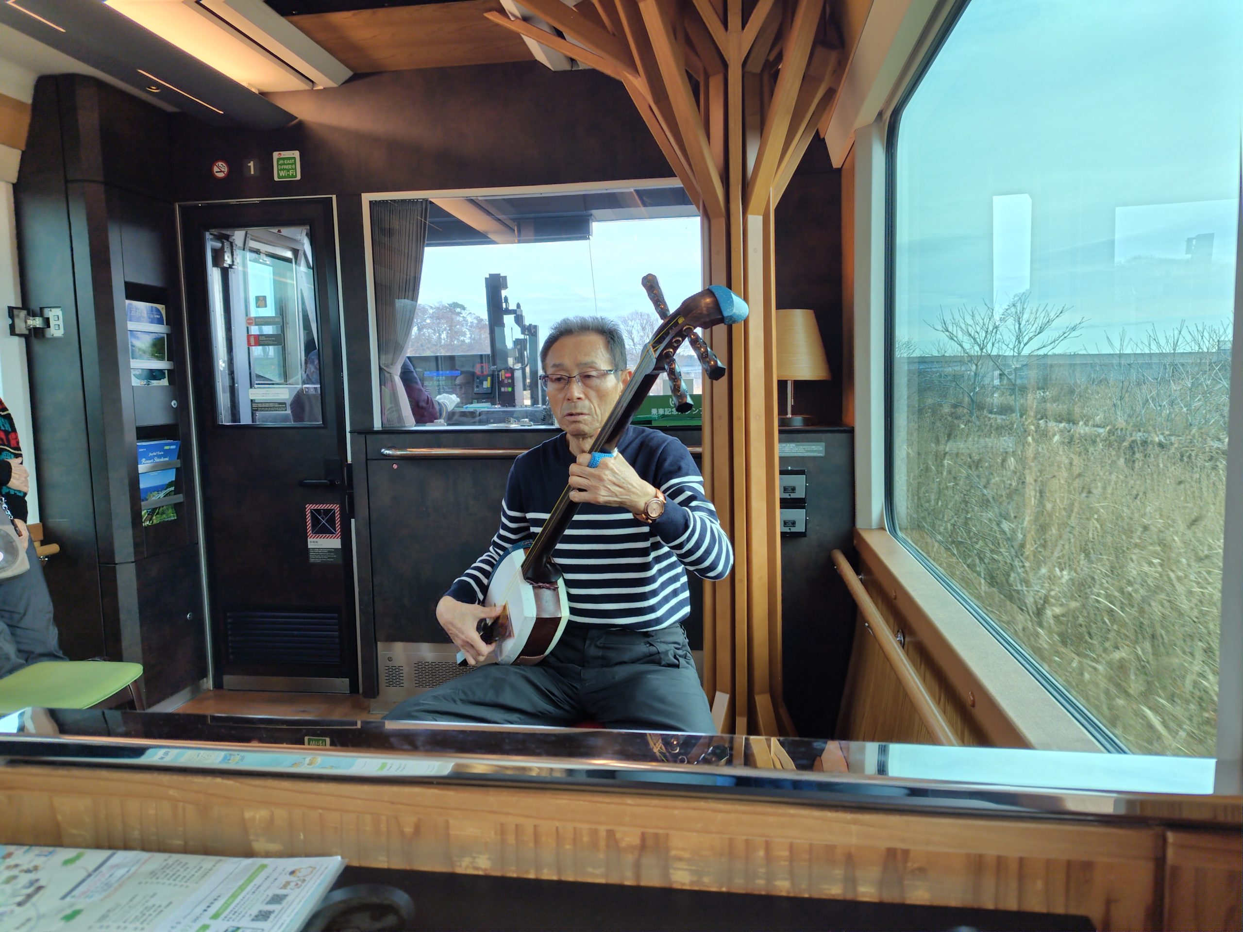 リゾートしらかみ1号に乗車の先頭車で津軽三味線生演奏イベント