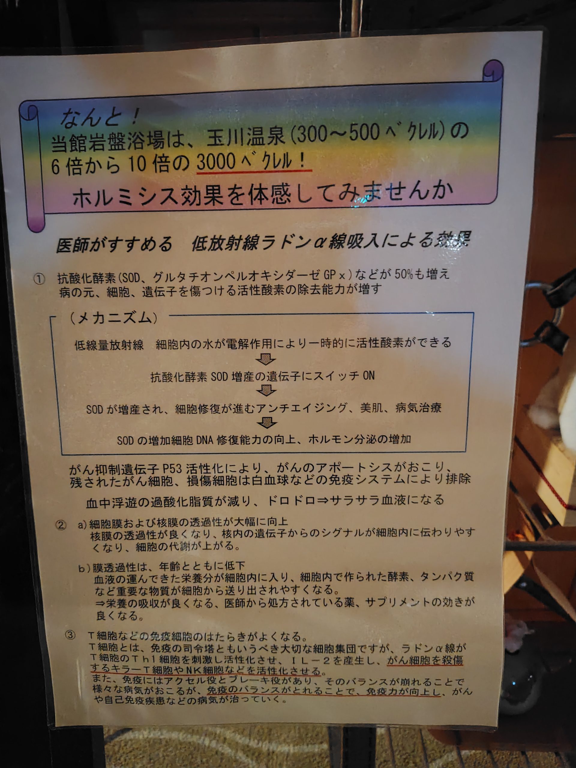 岩盤浴があり、ラドン量が多いようなので、岩盤浴もしてみることにしました。