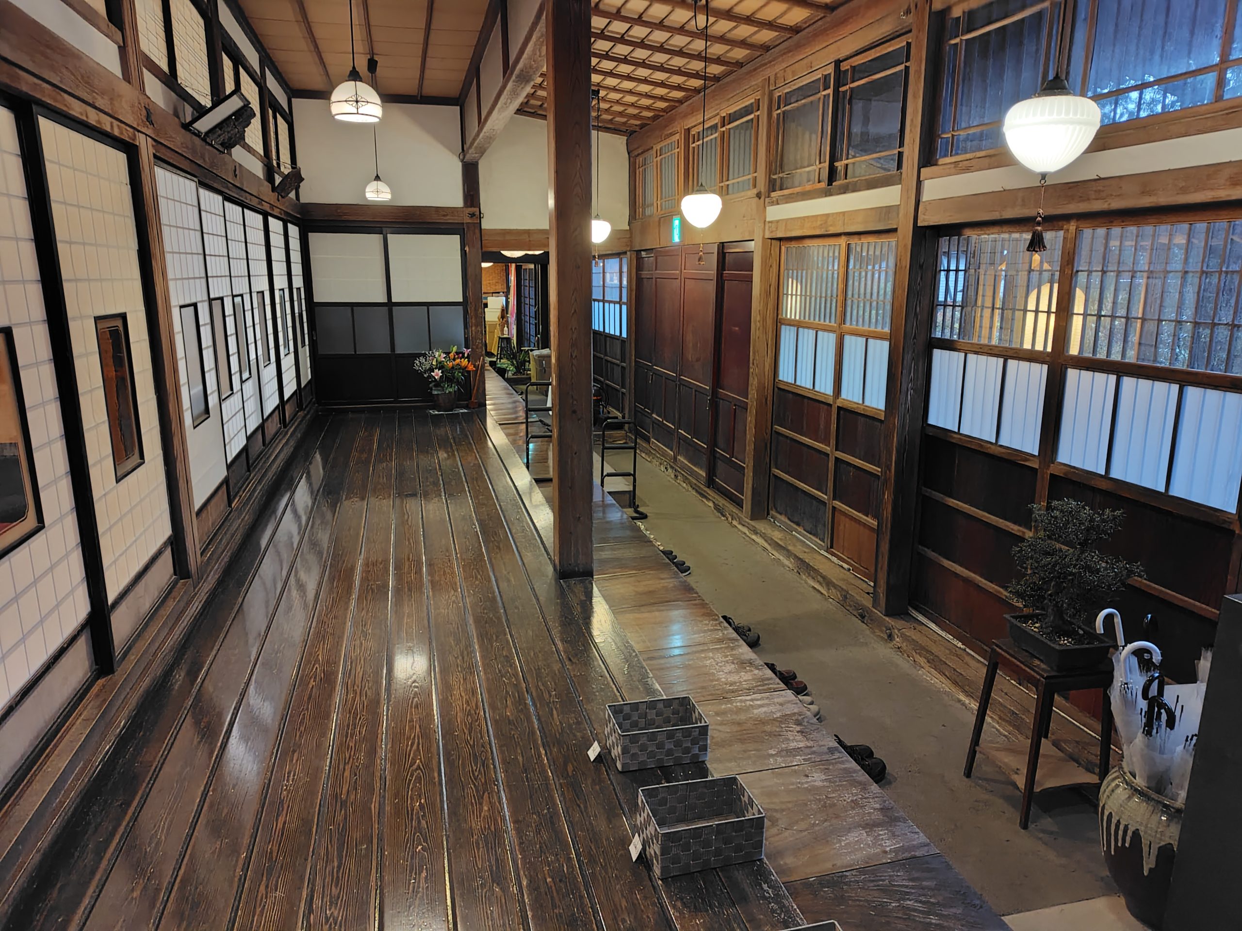16.3mを1枚の天然秋田杉で通した廊下です。素晴らしい!
