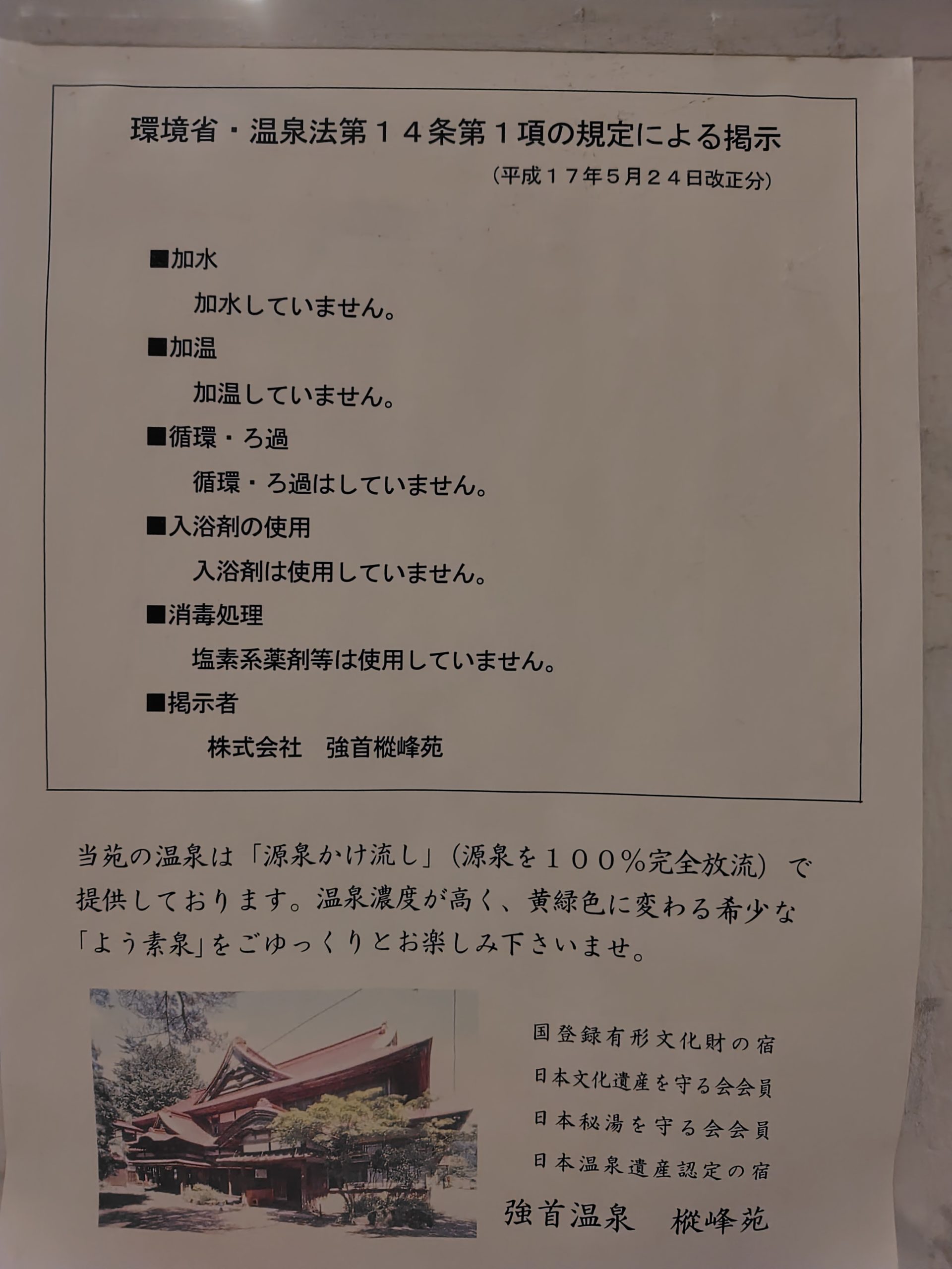 さすが、秘湯を守る会会員。きちんと明記しています。100%源泉かけ流し!