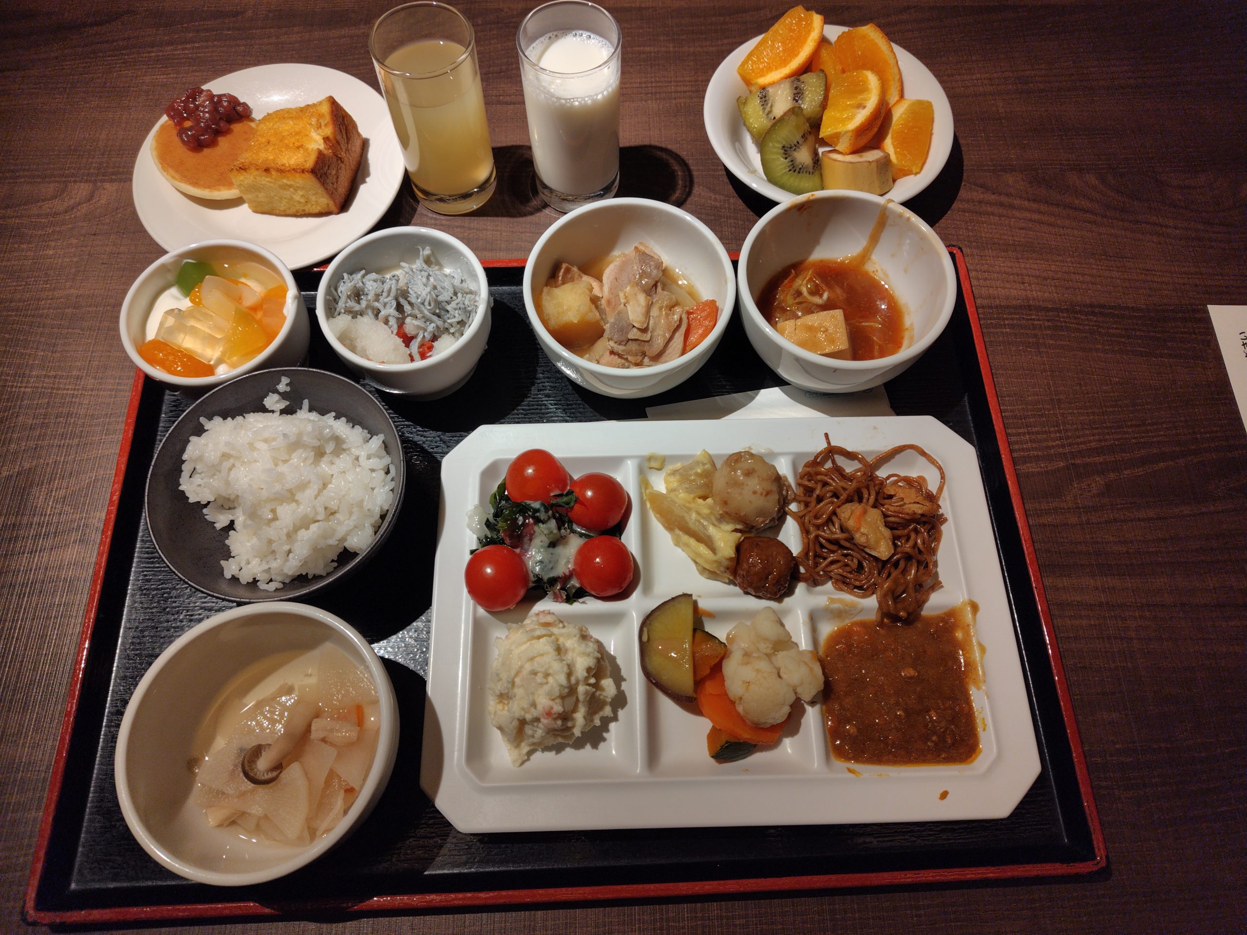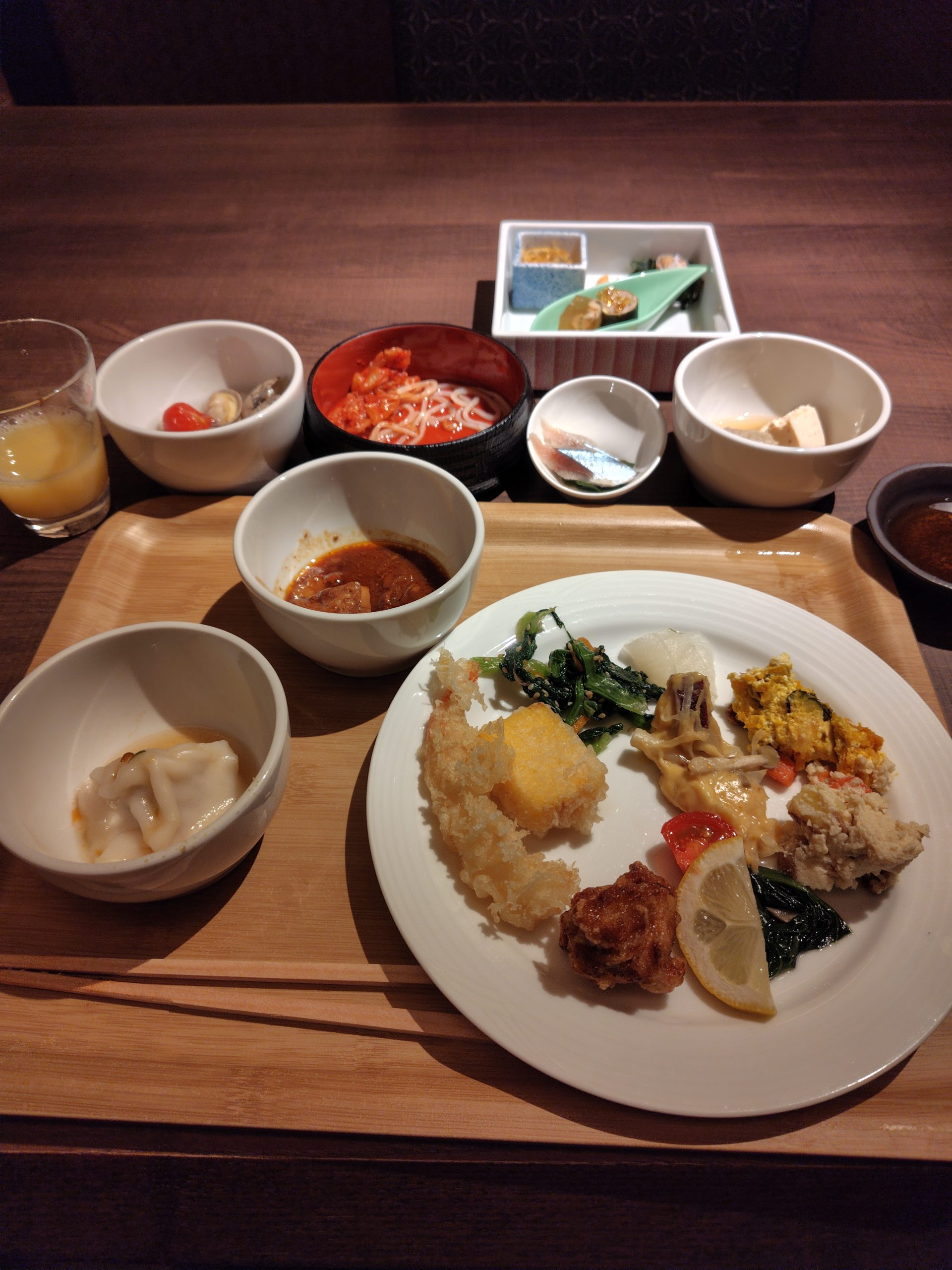 夕食はバイキング。たくさんとってしまった。満腹すぎた笑