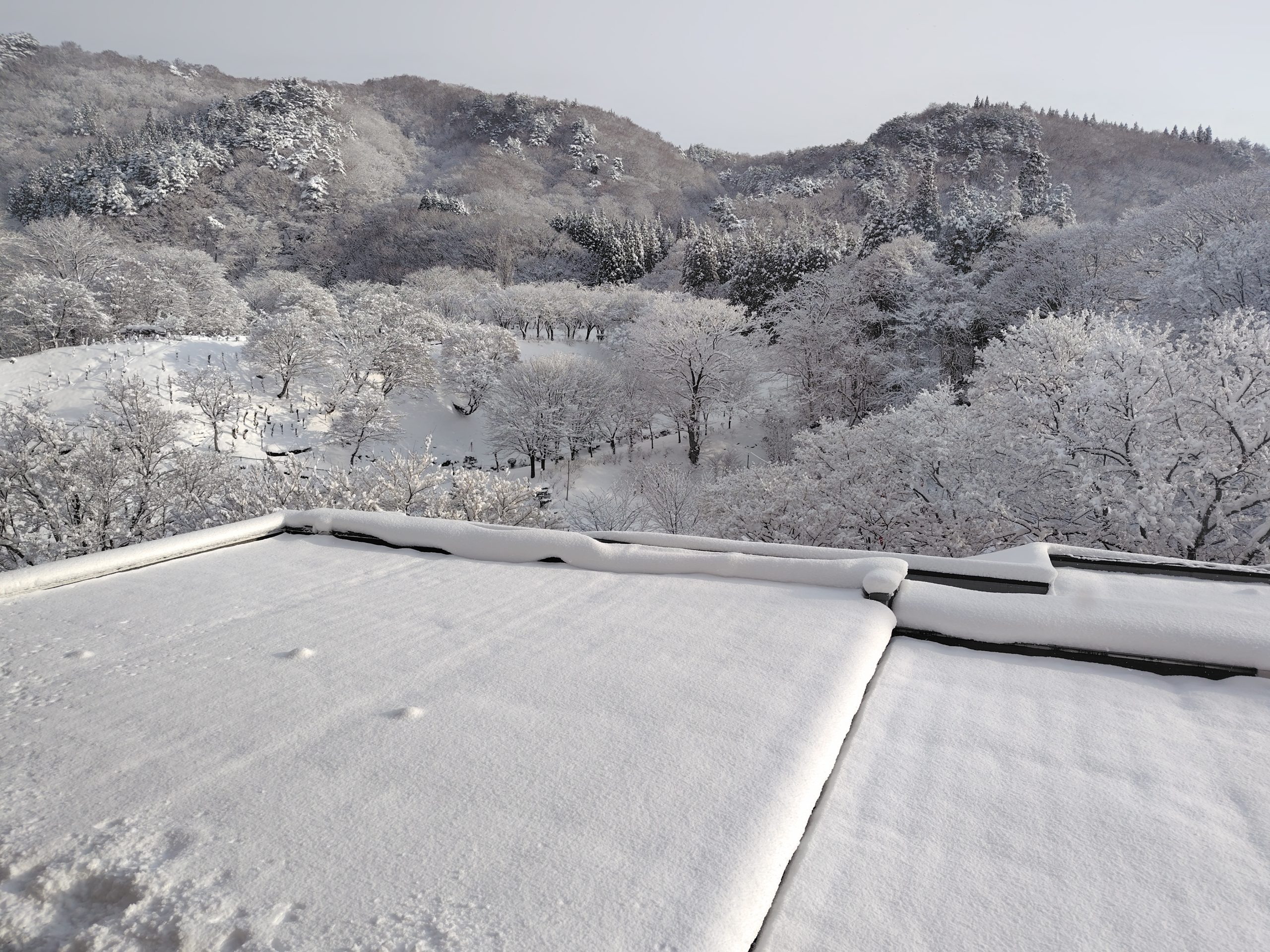 朝起きると雪が積もっていました。この冬、初めて積もったとのことです。