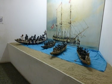 下写真はエルミナ城からでて、黒人が貿易船に連れていかれている場面です。