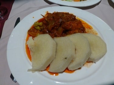 ガーナの夕食です。ここはバナナが主食なんです![]()