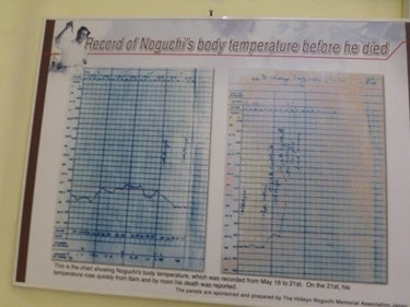 下写真は黄熱病にかかって死ぬまでの体温の記録です。野口英世は、女遊びが趣味だったようで淋病や梅毒で亡くなったという説がありますが、このようなデータが偽説の根拠になると思います。