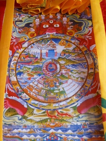 仏教で説く六道(地獄道、餓鬼道、畜生道、阿修羅道、人道、天道)の世界を絵画化した仏画です。