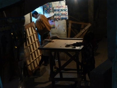 1m四方くらいの板の四隅に穴があいていて、オセロのようなプラチック製の白と黒のコマを指ではじいて勝負するおはじきで楽しむビリヤードです。