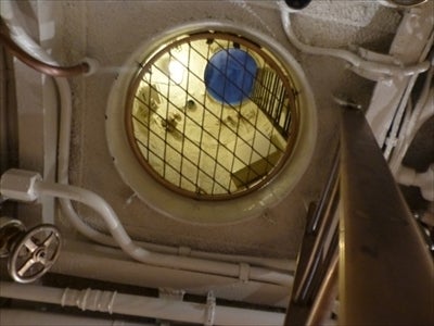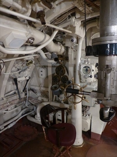 潜望鏡の奥に梯子があり、潜水艦のテッペンまでいけます。
