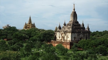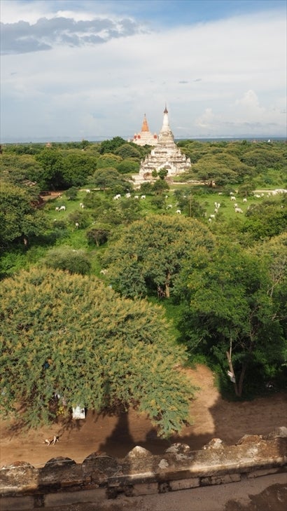 下の写真は北方向で、手前はシュエクーヂー寺院で、奥はバガン・ゴールデン・パレスです。
