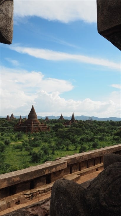 右にあるのはダビニュ寺院です。他にも多くのパゴタが見えます。