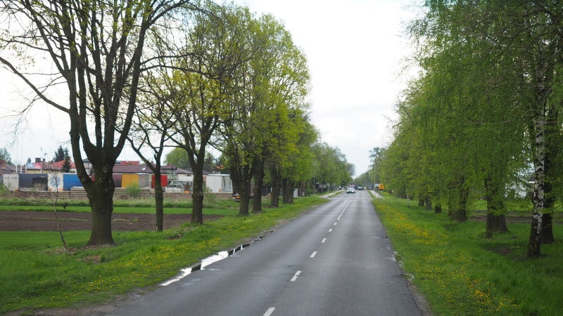 ジェラゾヴァ・ヴォラ村の道路風景です。