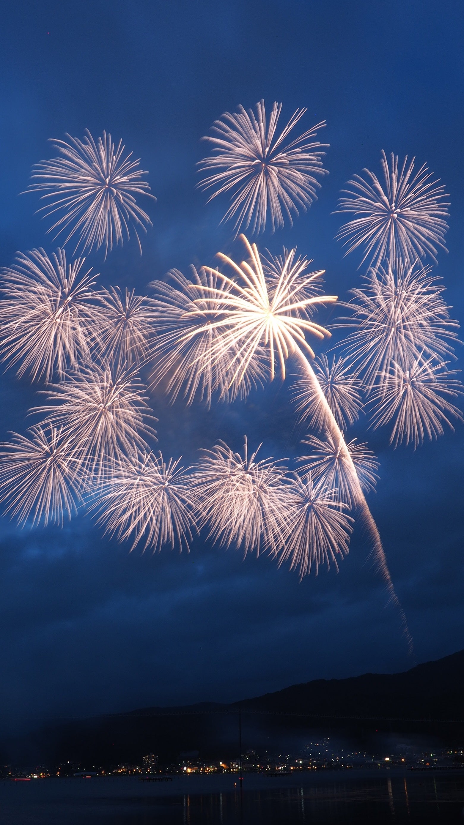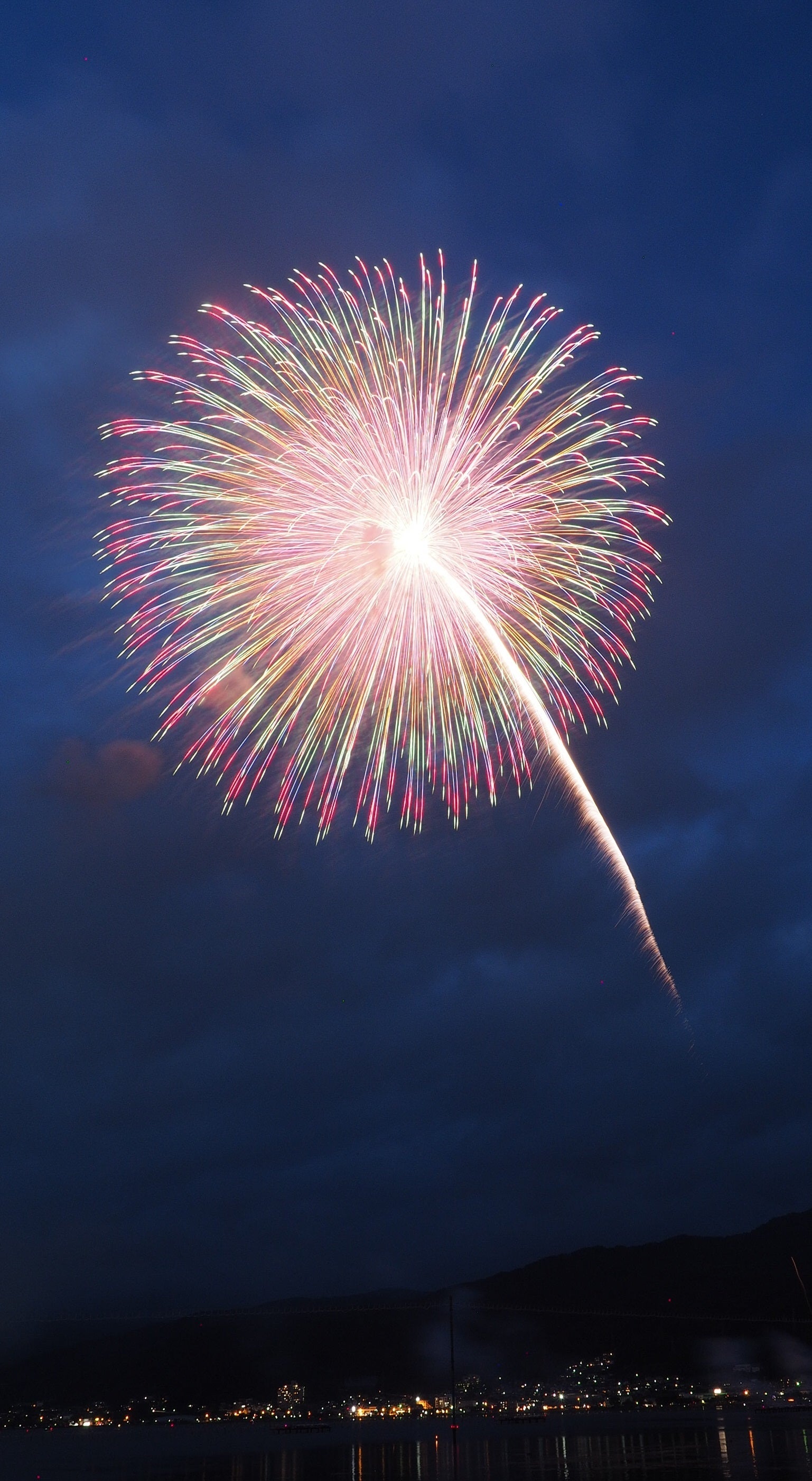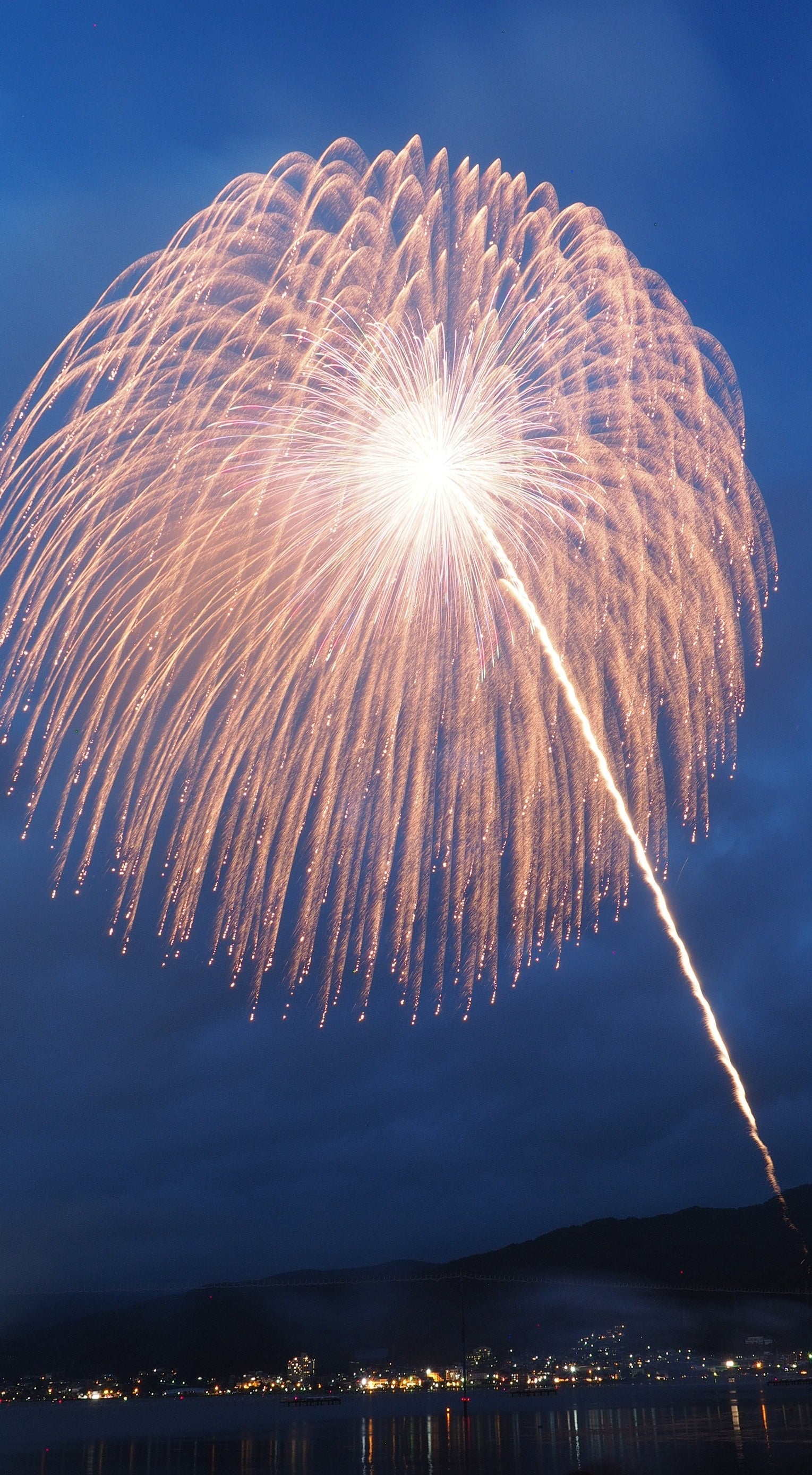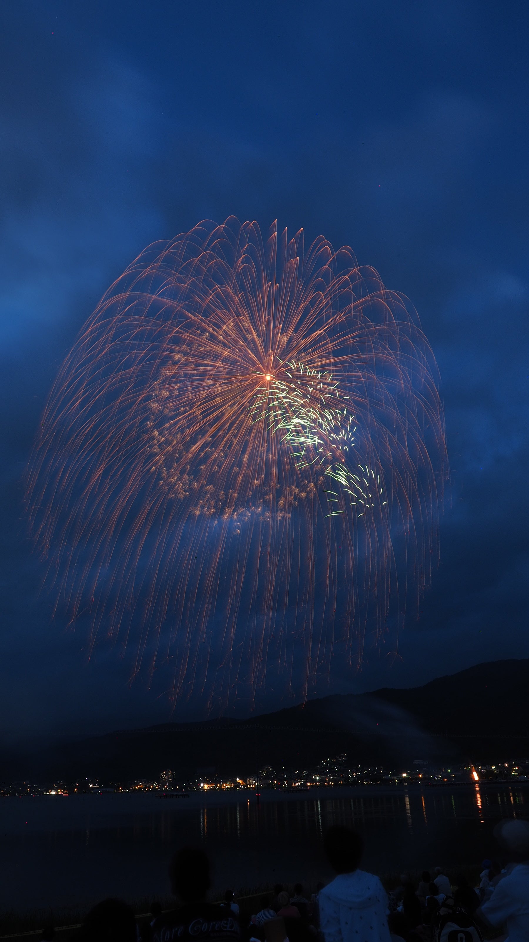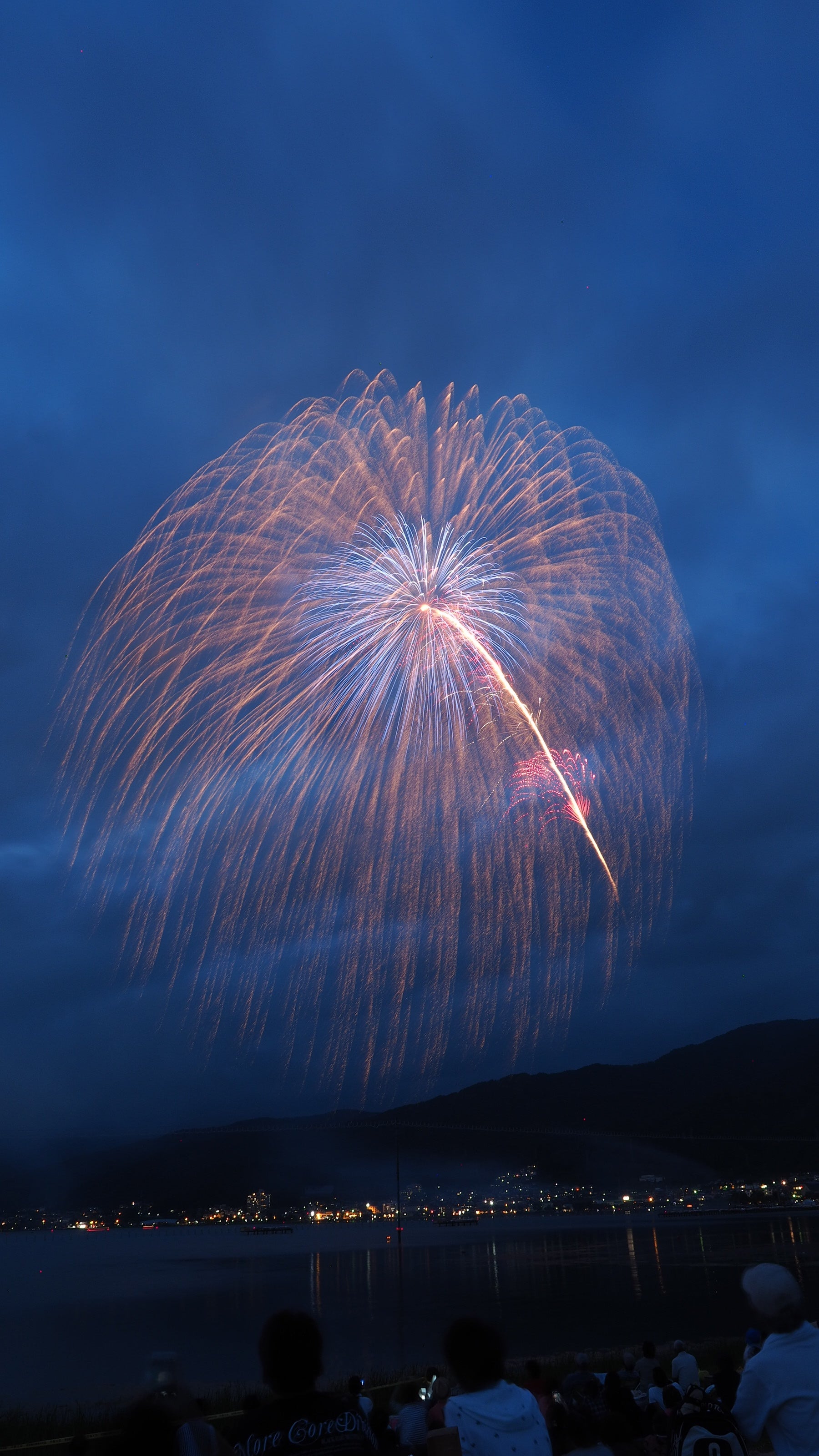 周囲を山に囲まれたフライパンの底のような地形の諏訪湖周辺は花火の破裂音が山々に響き渡り、音響効果は絶大です。