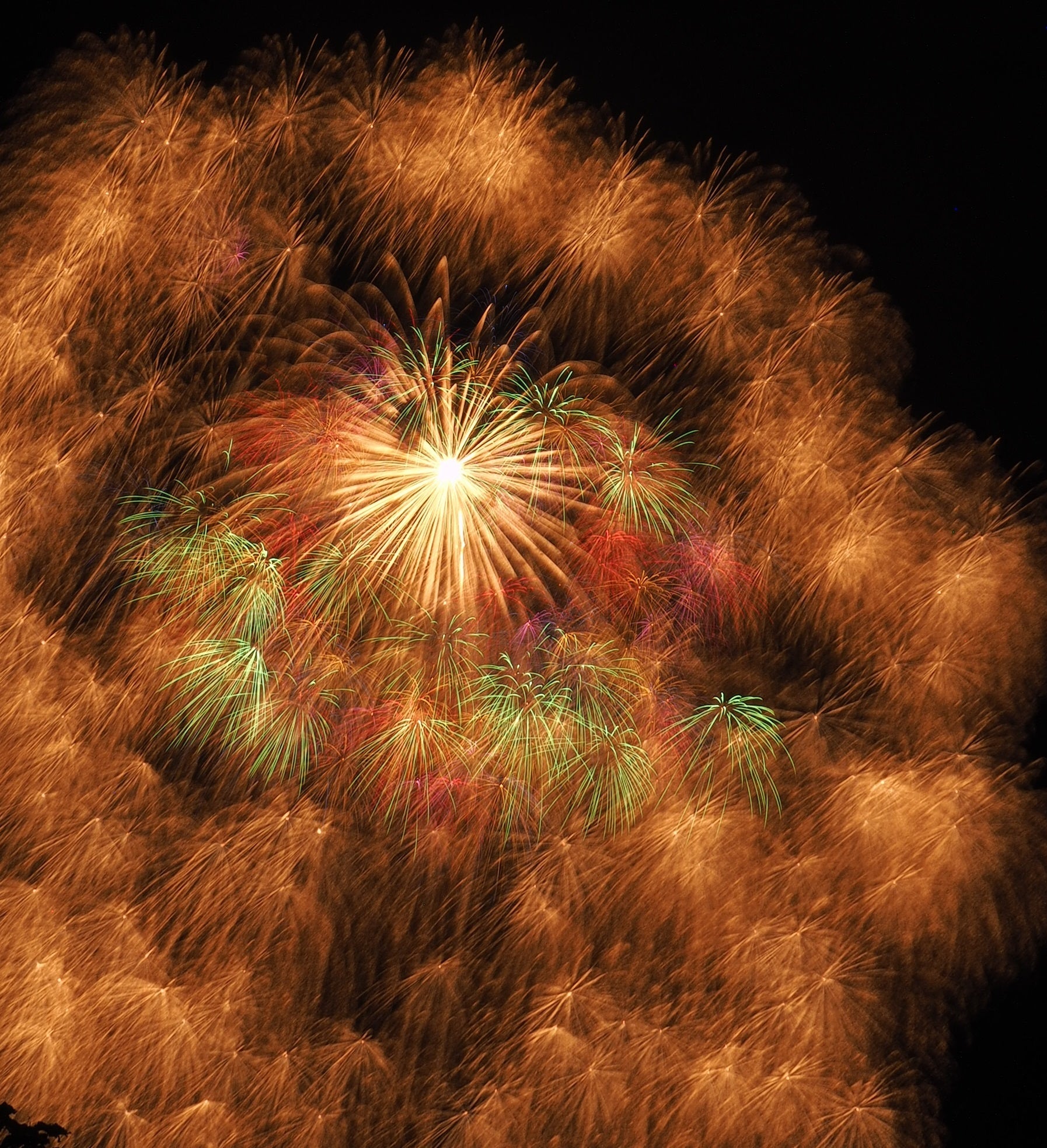 四百年の伝統を誇る「片貝まつり」は、三尺玉発祥で、世界最大四尺玉の打ち上げなど町中が花火一色となる熱狂的なお祭りです。