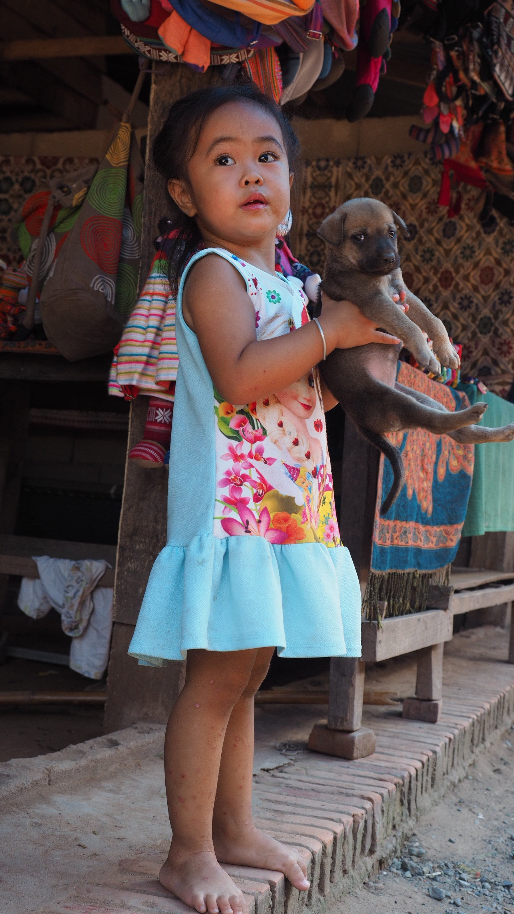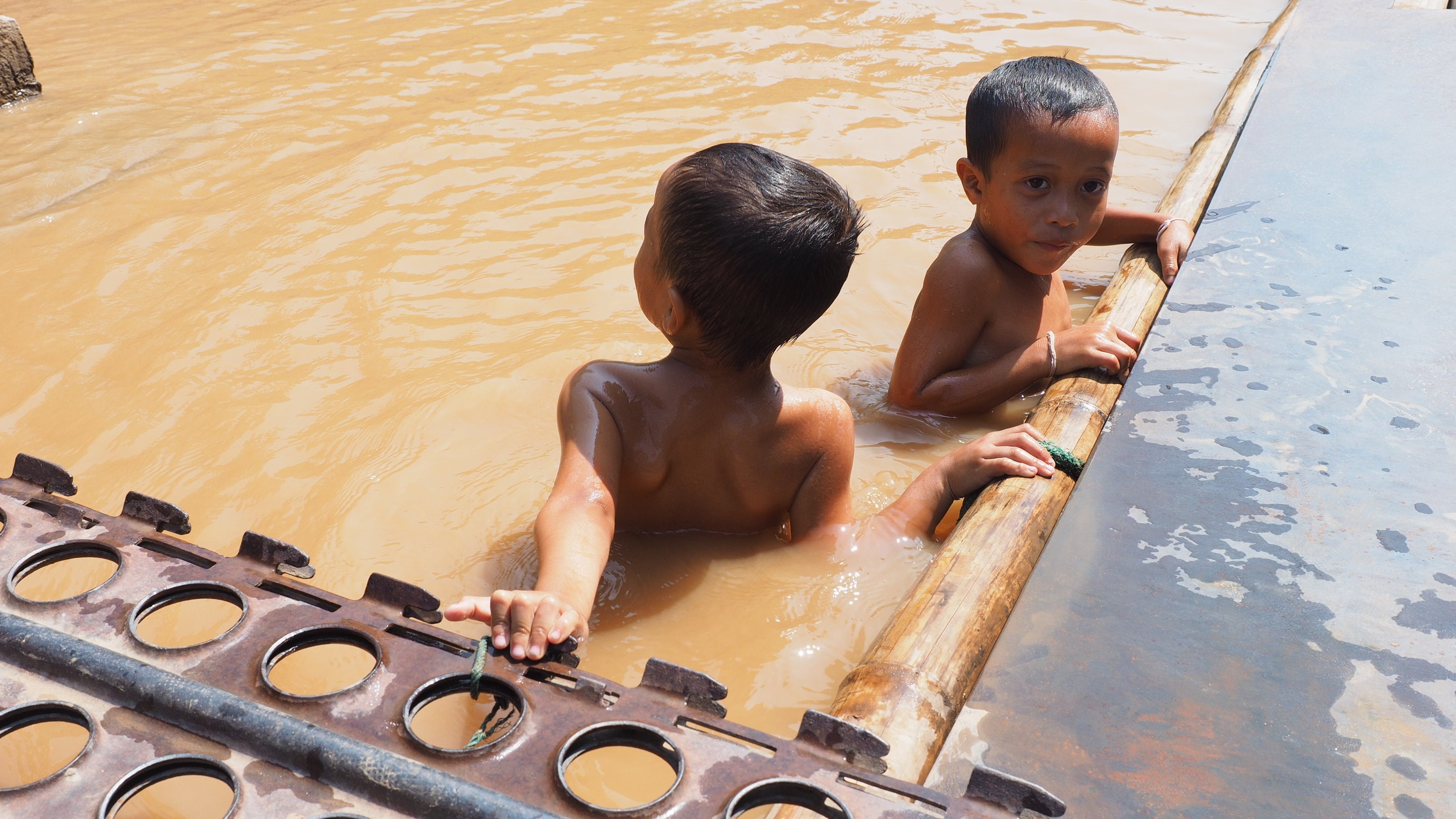 サンハイ村に着くととそこでは子供が川で遊んでました。