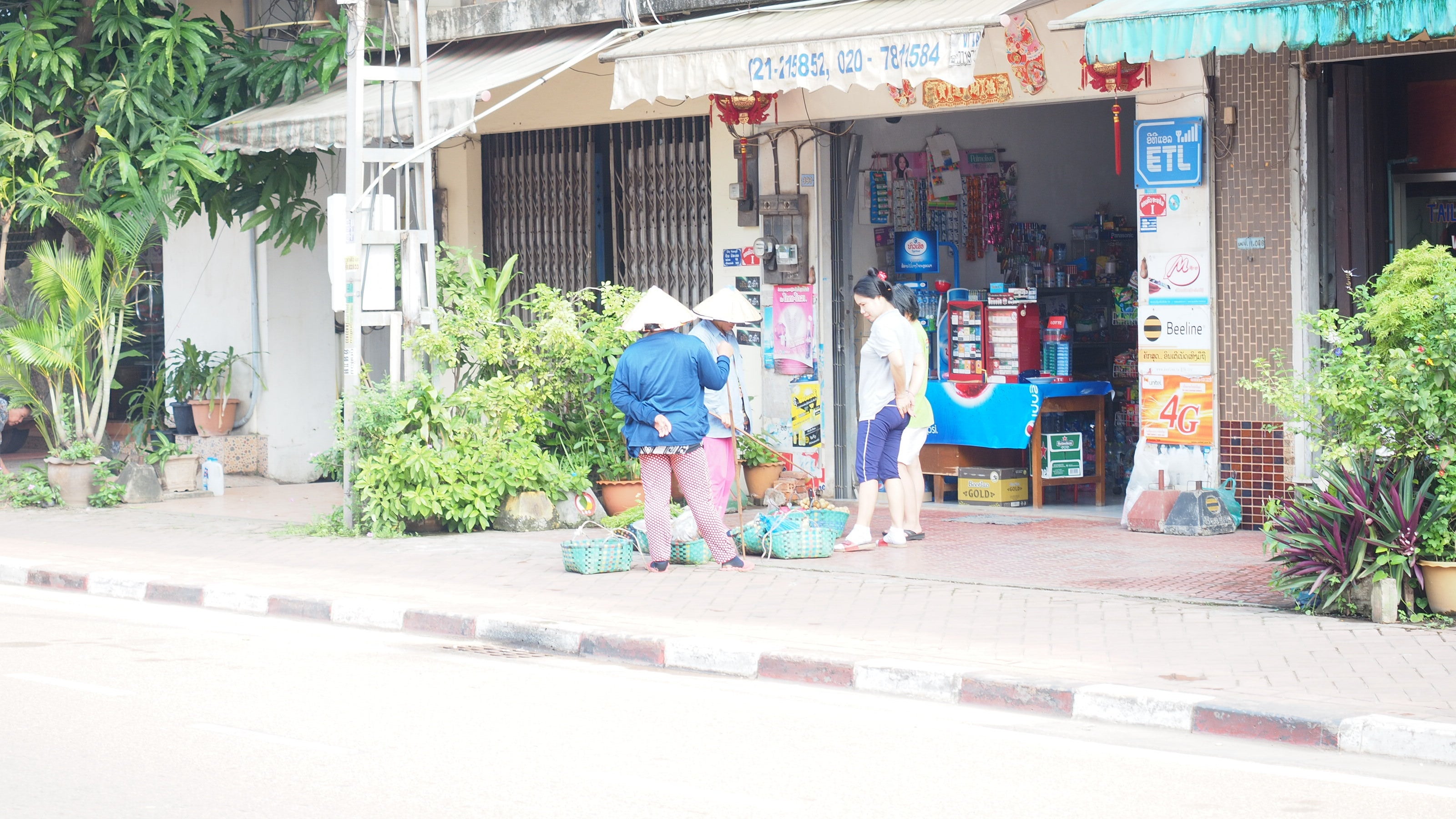 セーターティラート通りを西に歩いていると、物売りの方が。かごを背負って運んでるので、しんどそうでした。