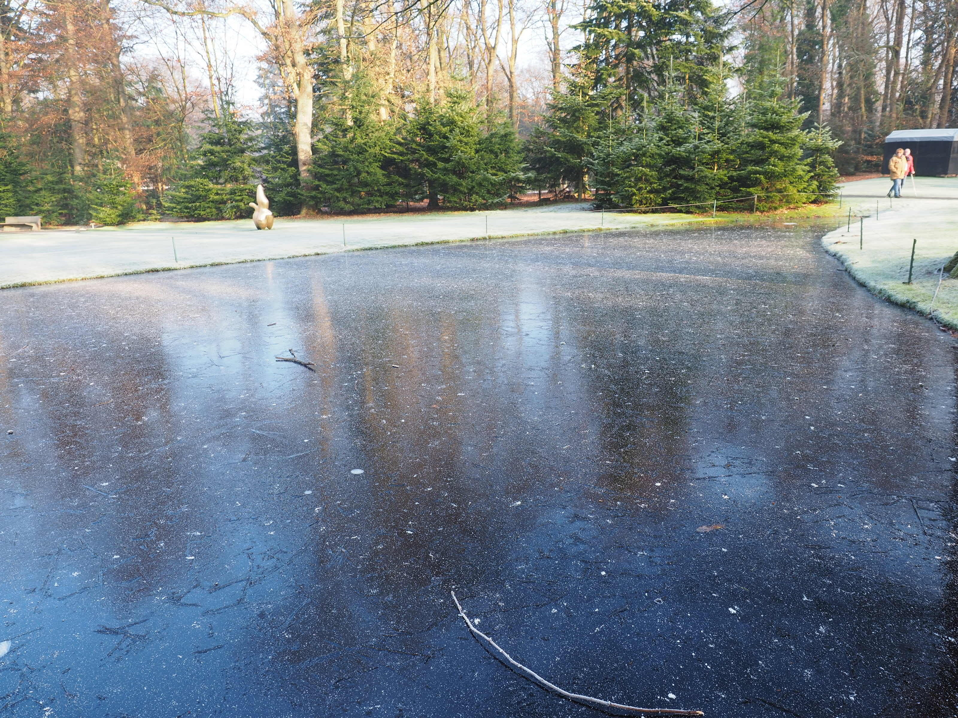 池には氷がはっていました。