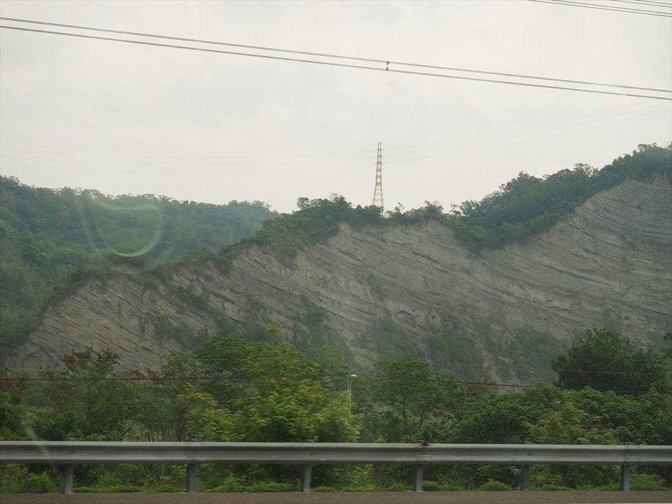 台湾の中心にある「埔里(ほり)」に向かう途中です。台湾は隆起してできた島で、至る所で地層をみることができます。ちなみに台湾は九州ぐらいの面積ですが、数十キロにも及ぶ山脈があり、最高峰は玉山3952mで富士山より高いです。台湾の隆起は世界最速の大隆起といわれています。