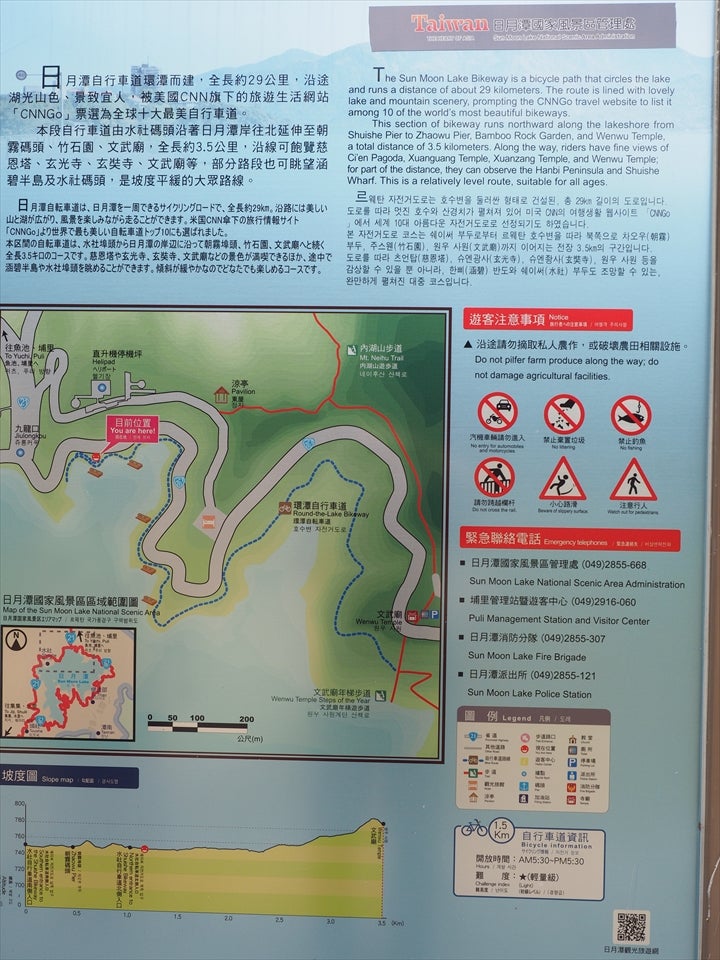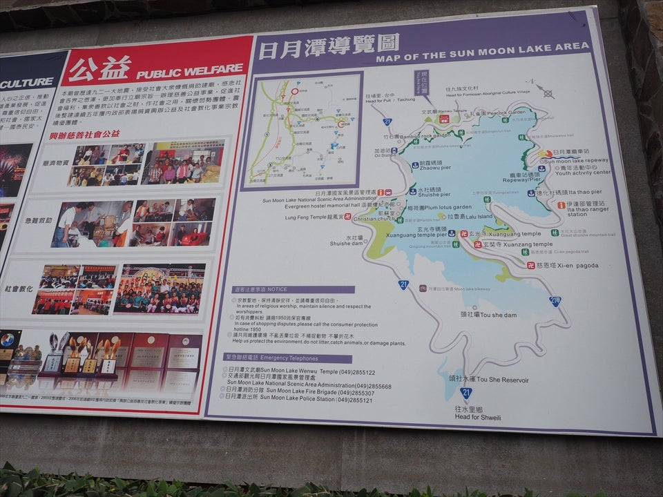 埔里を後にし次は日月潭です。台湾の有名な観光地でウォーキング・サイクリング以外にも遊覧船で観光できます。