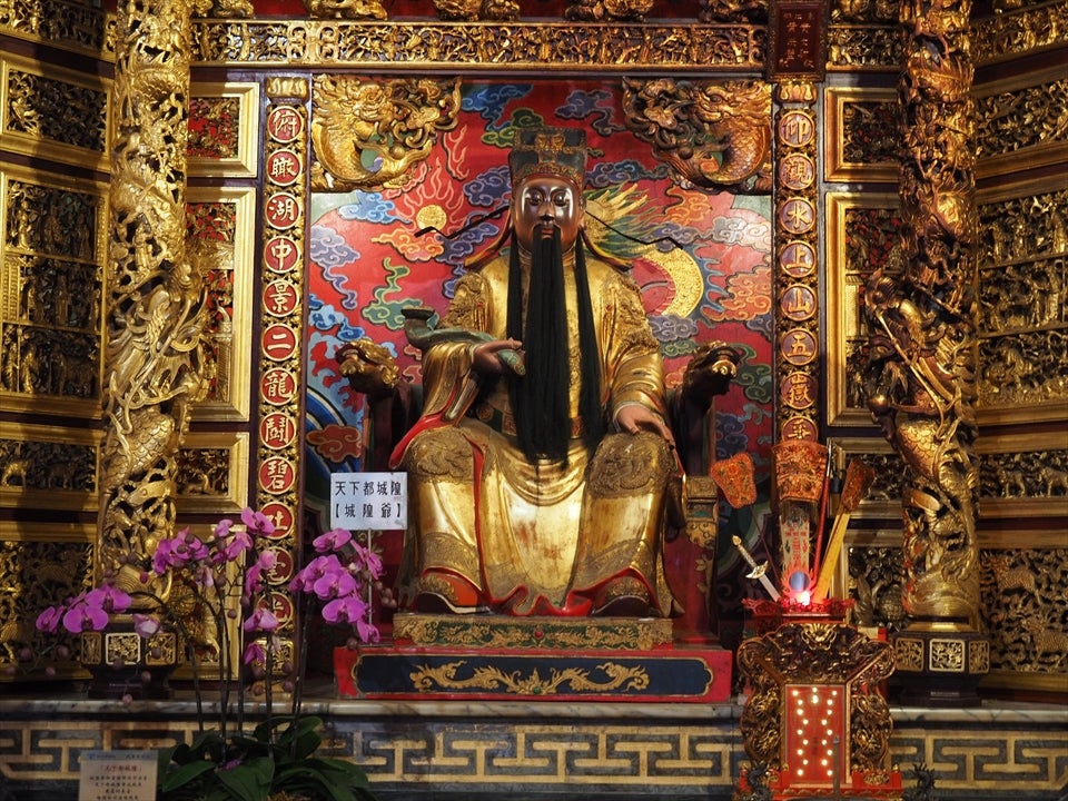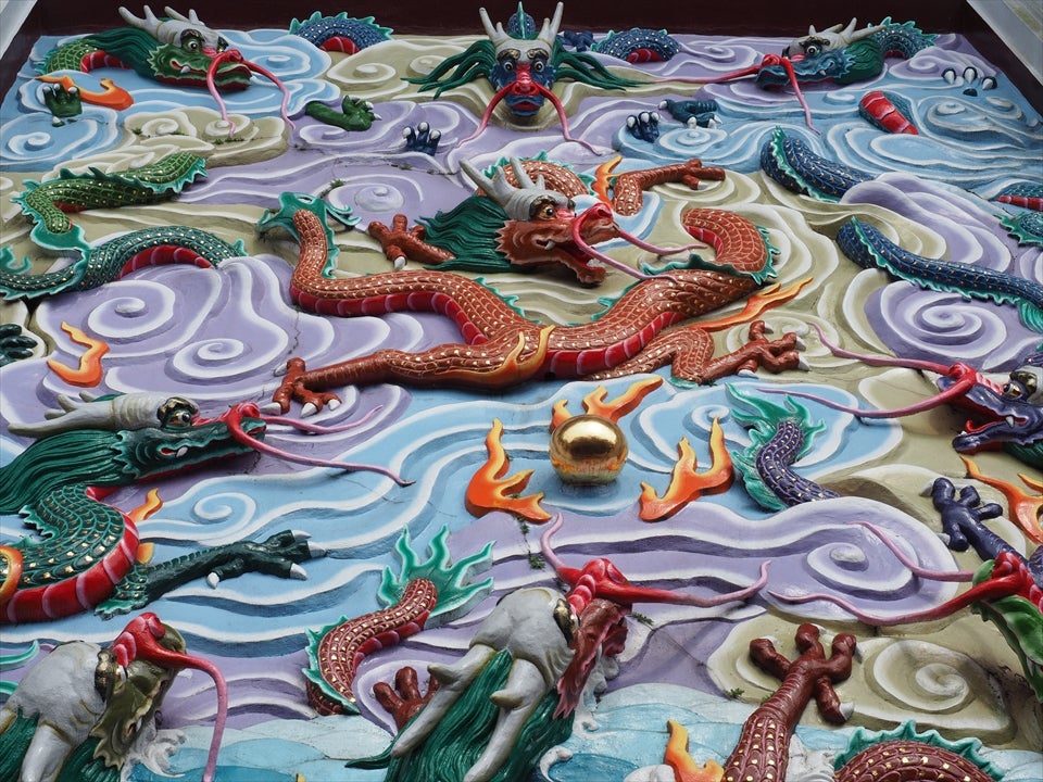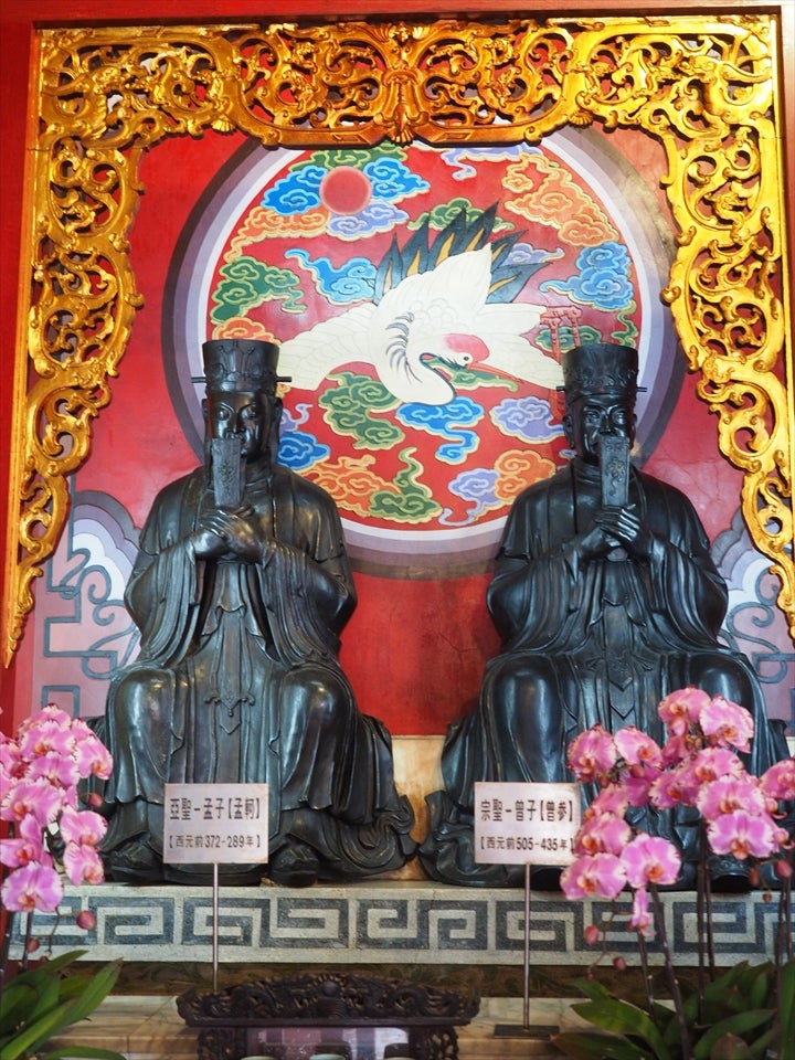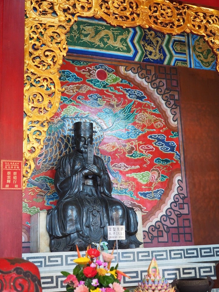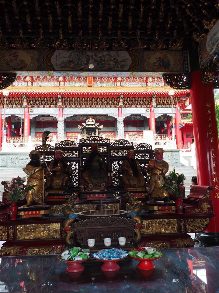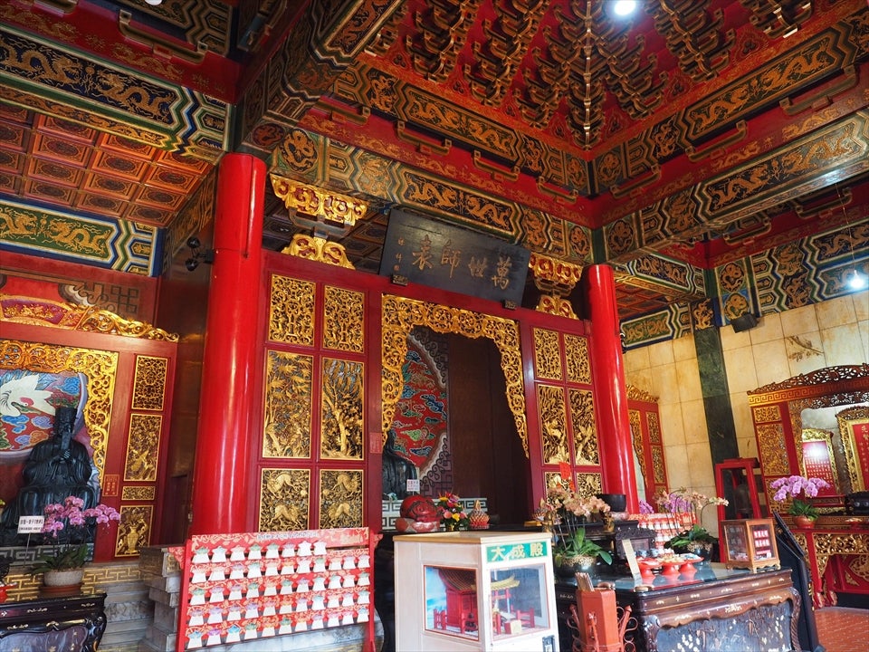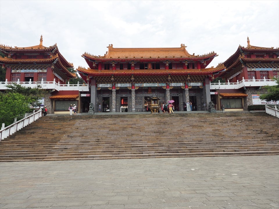 次は文武廟です。1938年に日月潭のダム工事で水没する水社村の竜鳳宮と益化堂を現在の位置に移動し、文武廟としました。1969年に「北朝式」の建築様式を採用し、孔子(学問の神様、日本でいう菅原道真)、武聖関公(武門の神様となった関羽)、岳飛(南宋時代、女真族に蹂躙される中国大陸で連戦連勝の後に非業の死を遂げたため、中国歴史の英雄中の英雄)を祀っています。