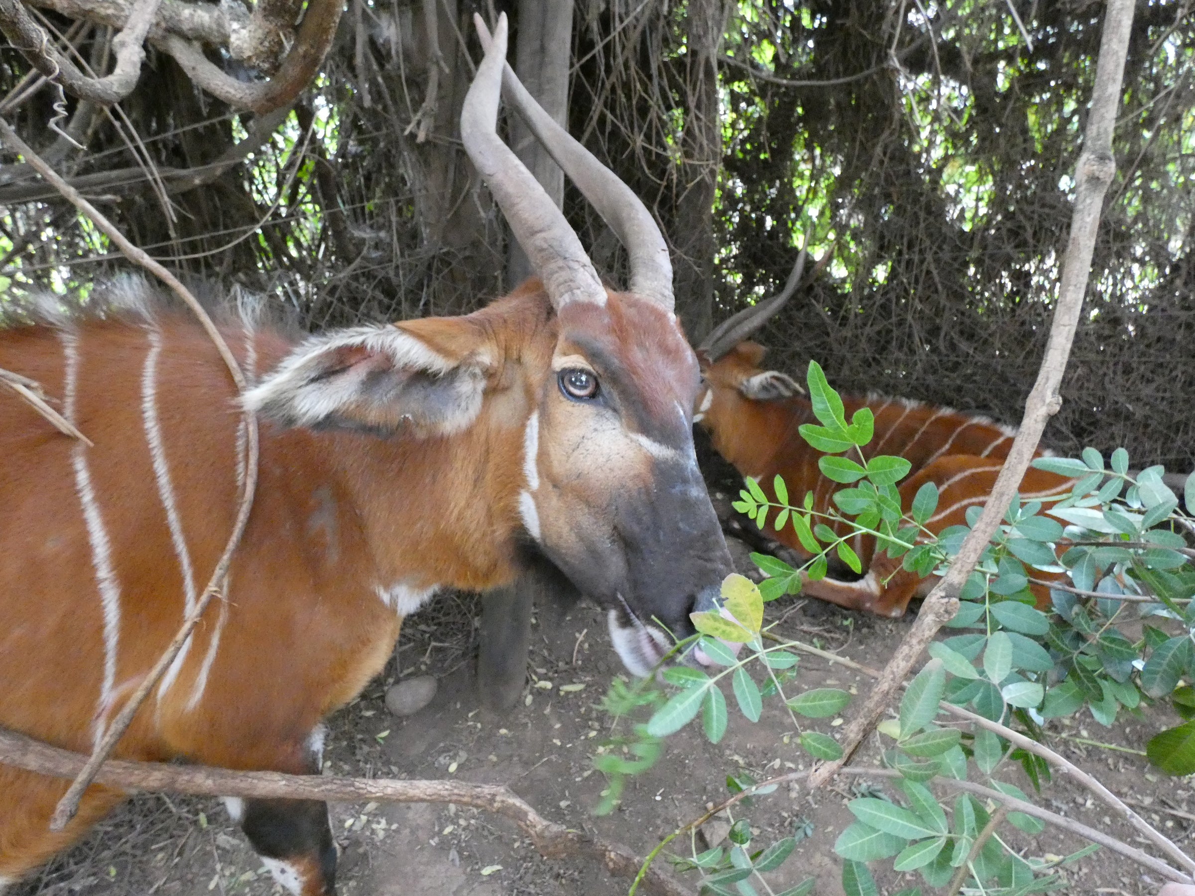 での動物ふれあい、世界四大珍獣の2種類(ボンゴ、コビトカバ)やレオパード、チーターなどの観察