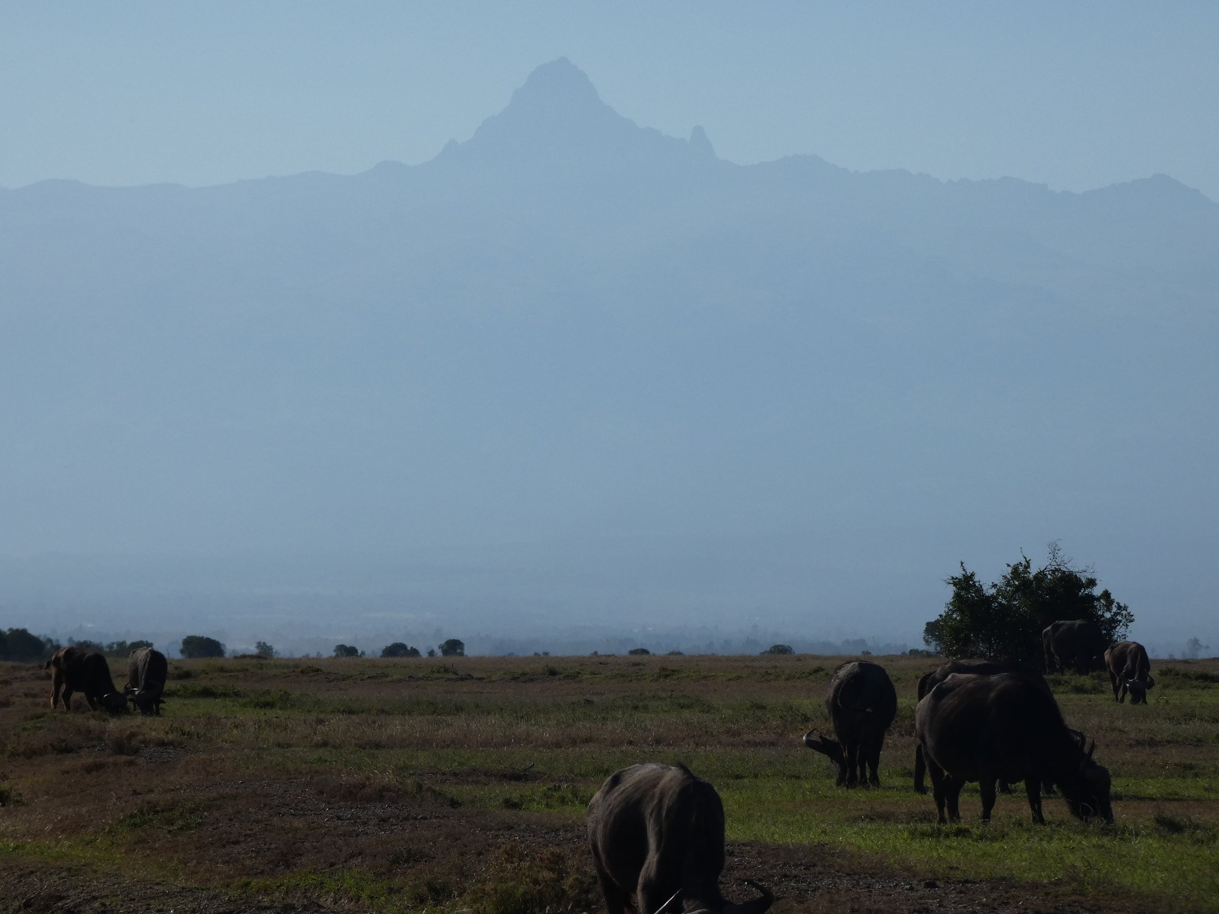 ・ケニア山(5199m、アフリカ第二高峰)とサファリ・ドライブ(クロサイ、シロサイ等)