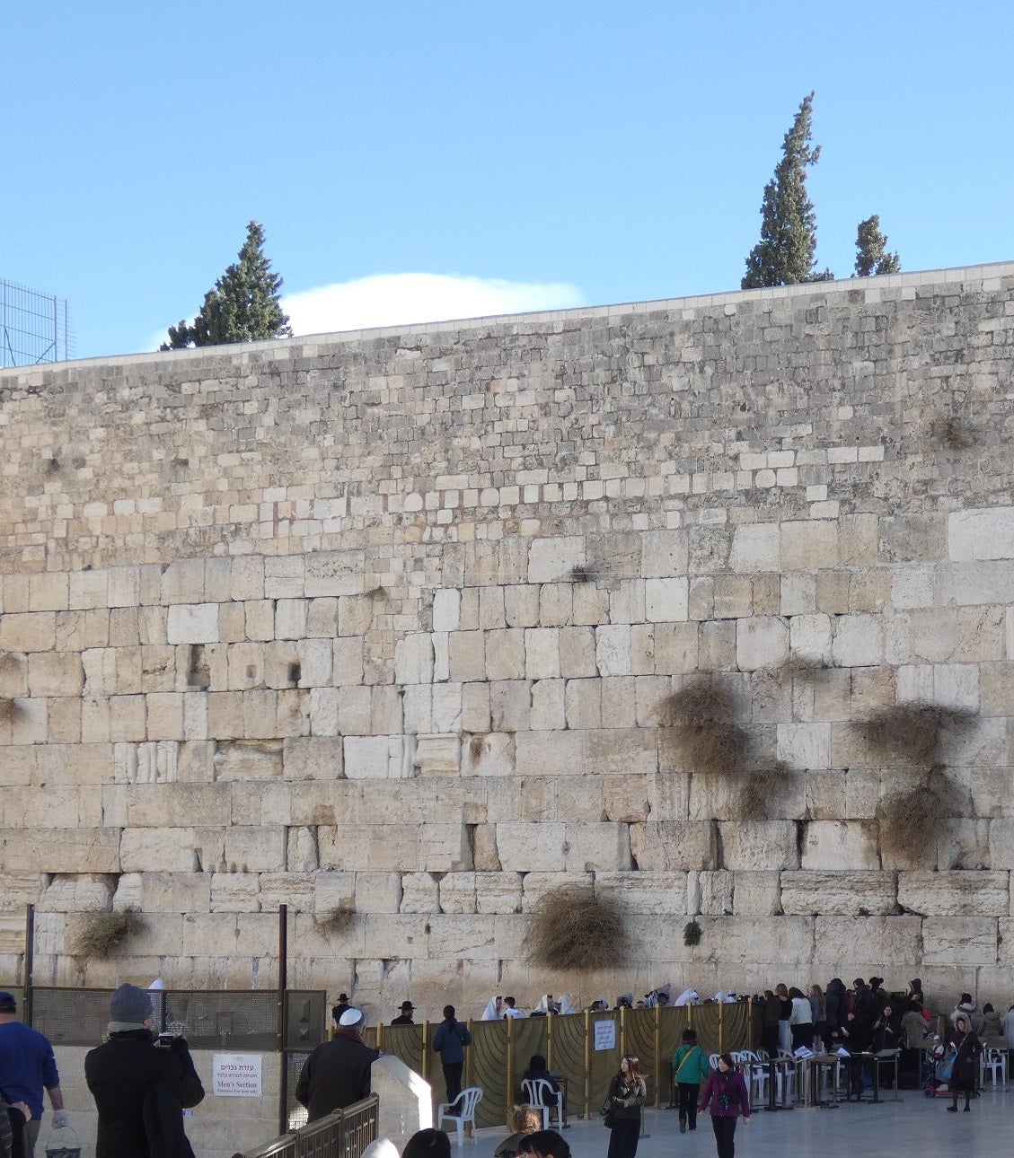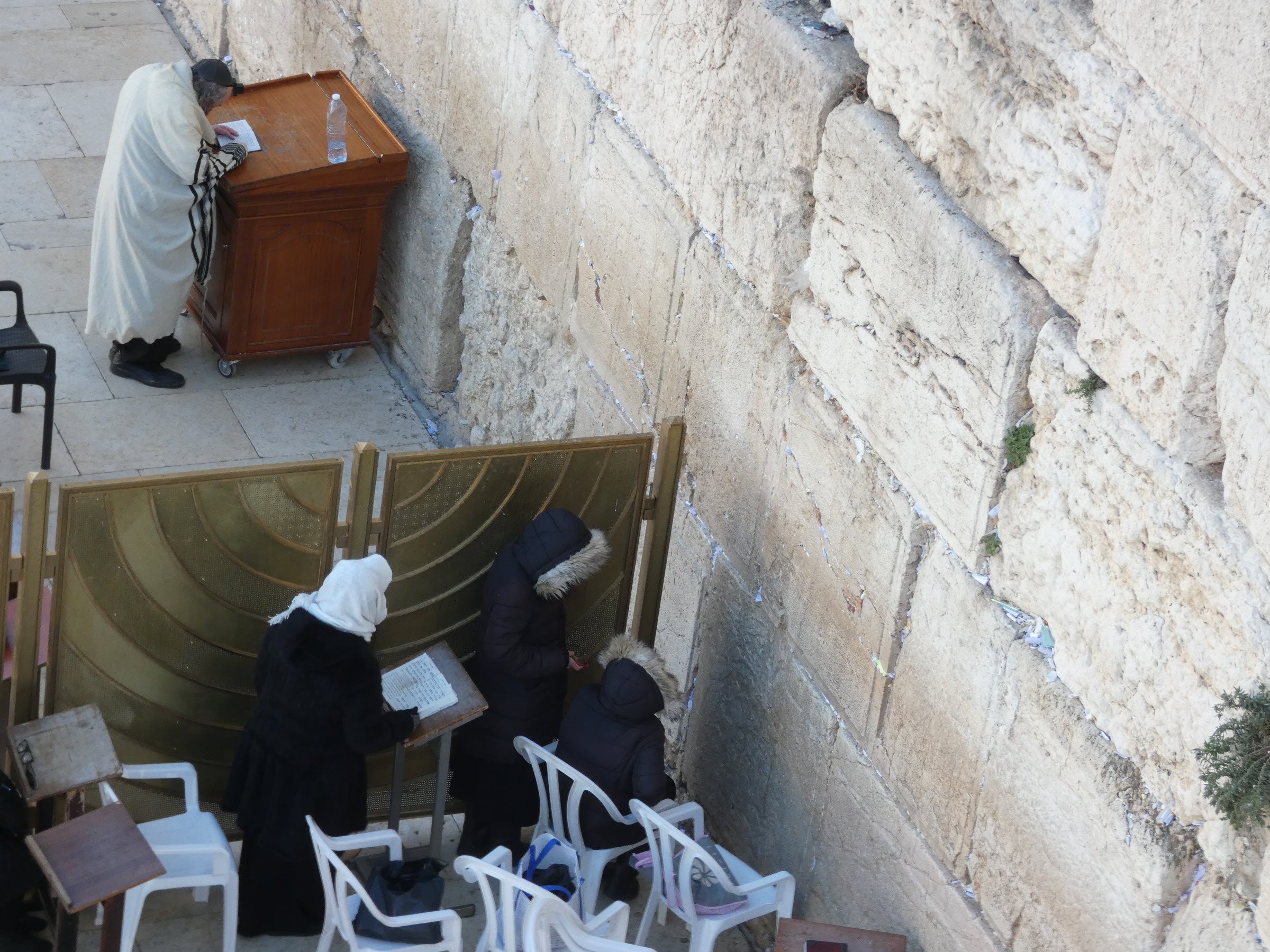 嘆きの壁です。木で仕切られた奥が男性、手前が女性で男女を分けています。