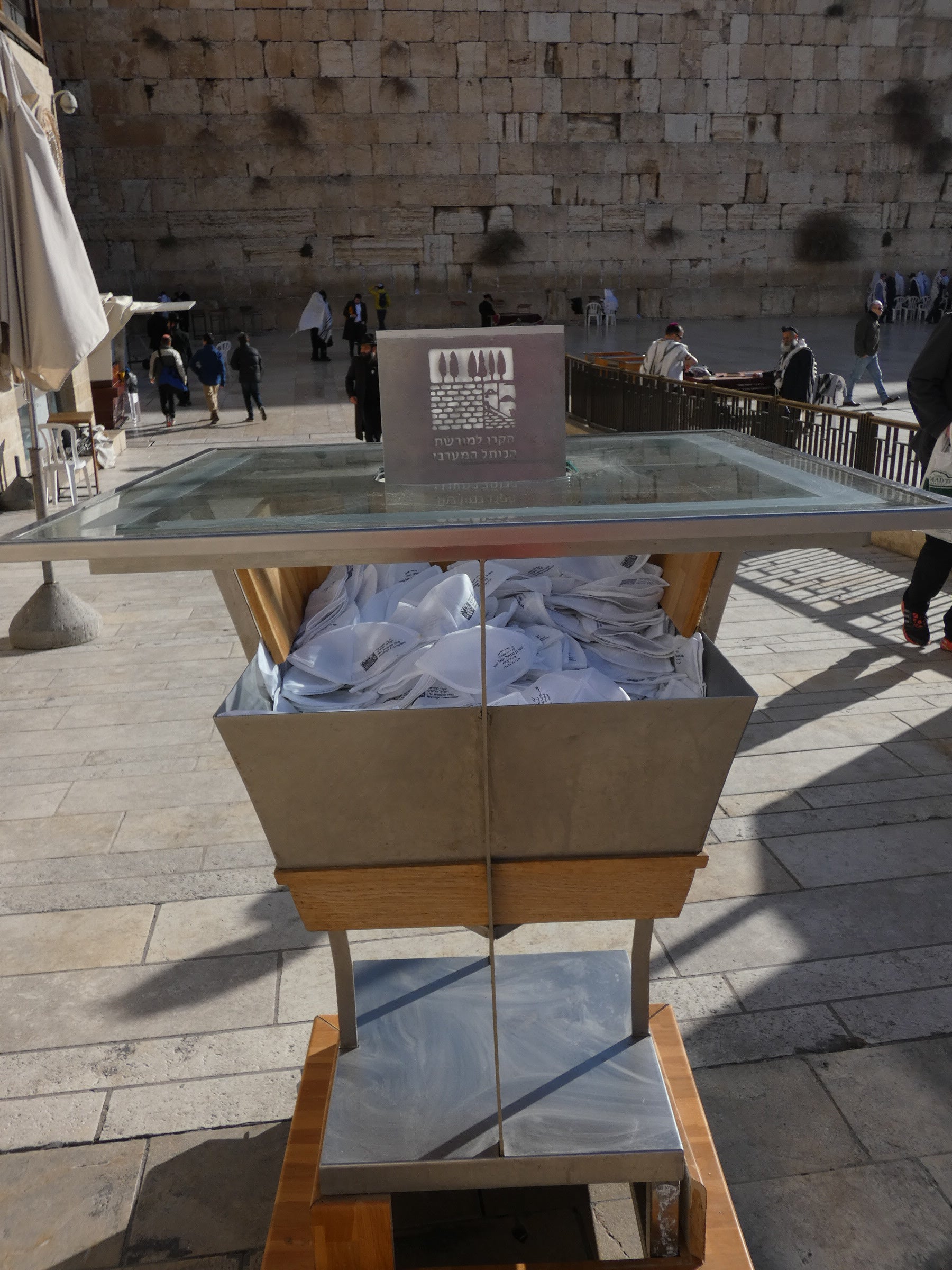 これは紙に願い事を書いて嘆きの壁にいれると願いがかなうとのことです。